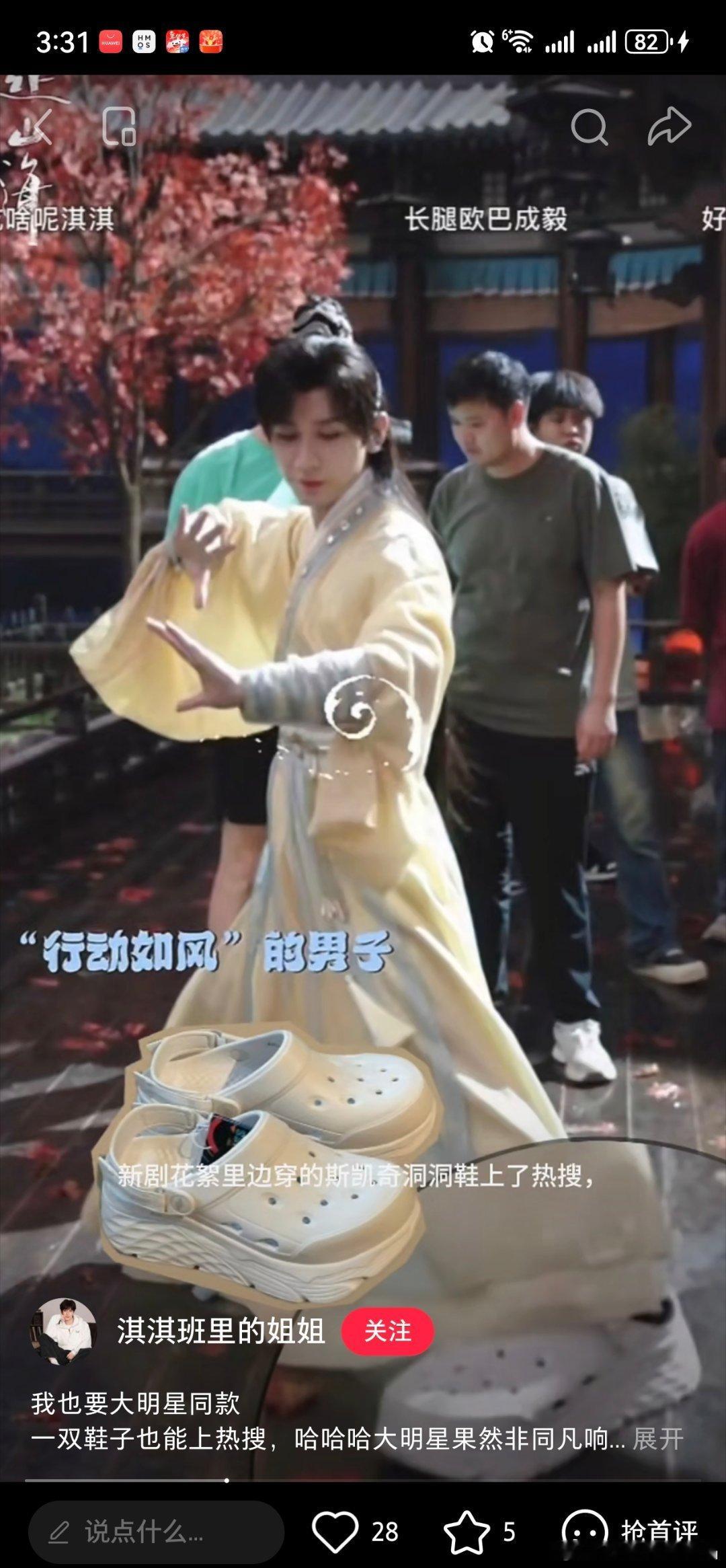 成毅脚骨折拍奔跑戏现代装和古装经常穿厚底鞋,确实容易摔跤,还是以前穿平底鞋比较稳。