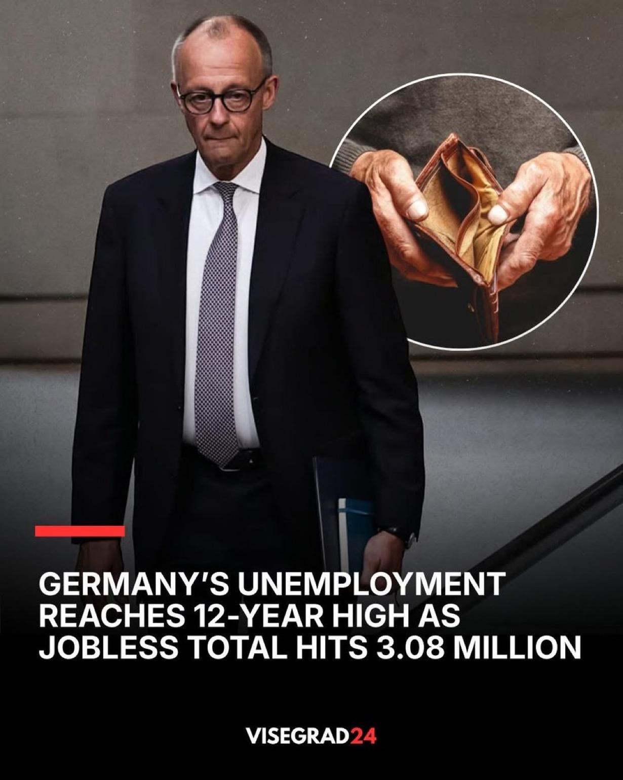 2026年1月,德国失业人数达到308万人,创近12年来新高。 此前,2025 年 12 月失业人数增加了约 177,000 人,导致未经调整的失业率上升至 6.6%。