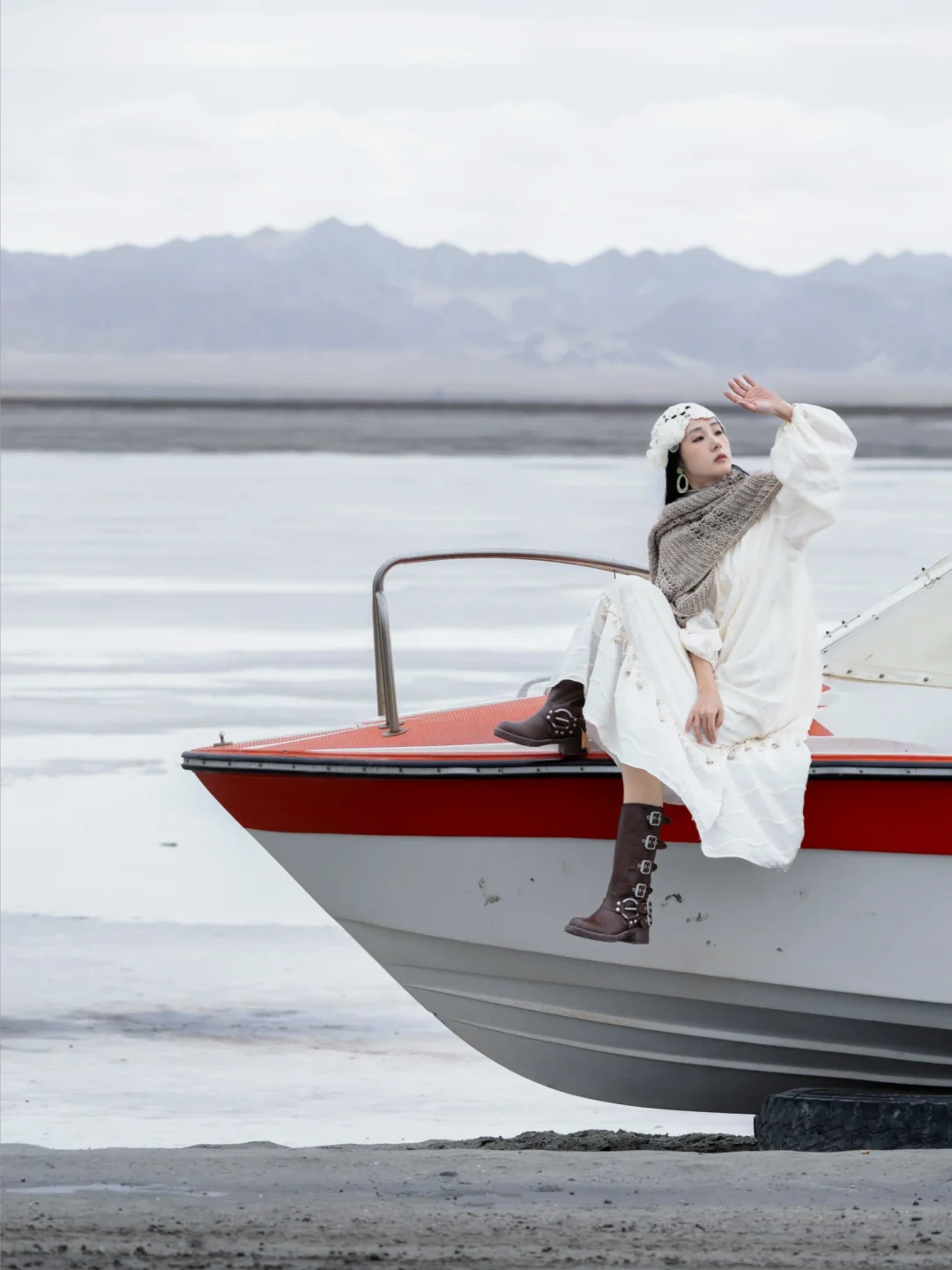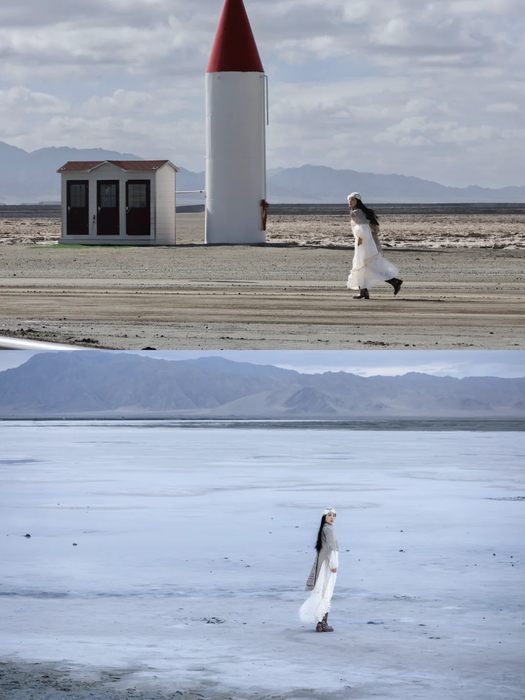 来西北旅行的每一天, 都在感叹自己见识的匮乏。 已经干涸的盐湖,灰白色铺展到天际, 裂纹纵横其间,如冰封的荒原。 走在上面不自觉缓步,直觉在提醒我“小心冰裂”。 站在这样的景色面前,既让人感到渺小, 又莫名生出一种奇怪的安宁。 在城市里要紧跟的风潮、热搜、讨论, 此刻丝毫都不重要了。 眼前空旷一片,我不再关心人类, 两手空空,自由且自在。