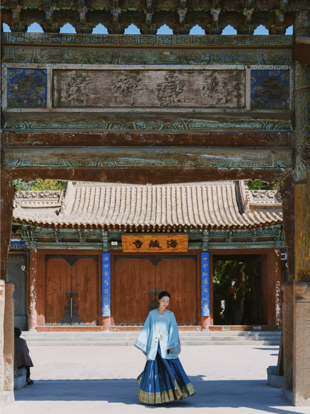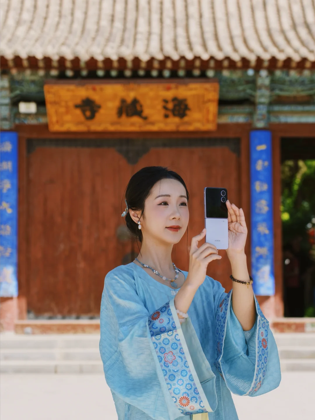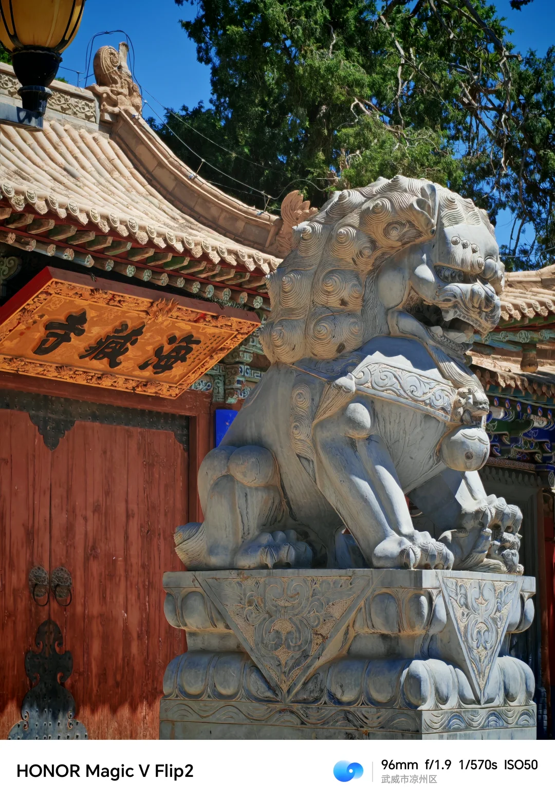 在武威城西北角,藏着一座被历代文人称为"梵宫之冠"的古刹——海藏寺。 正午进寺,酷烈的日光呵退了本就少的游客。带着新一代小折叠自在地逛拍。5500mAh青海湖电池,旅行一天无负担,随时记录沿途景色见闻。2亿超清写真镜头,人像直出也美丽~ 壁画难掩斑驳,树皮藏着沟壑,梁枋磨去棱角……仿佛回到了在山西访古的日子。 凉州是该有这么一座寺,我想。