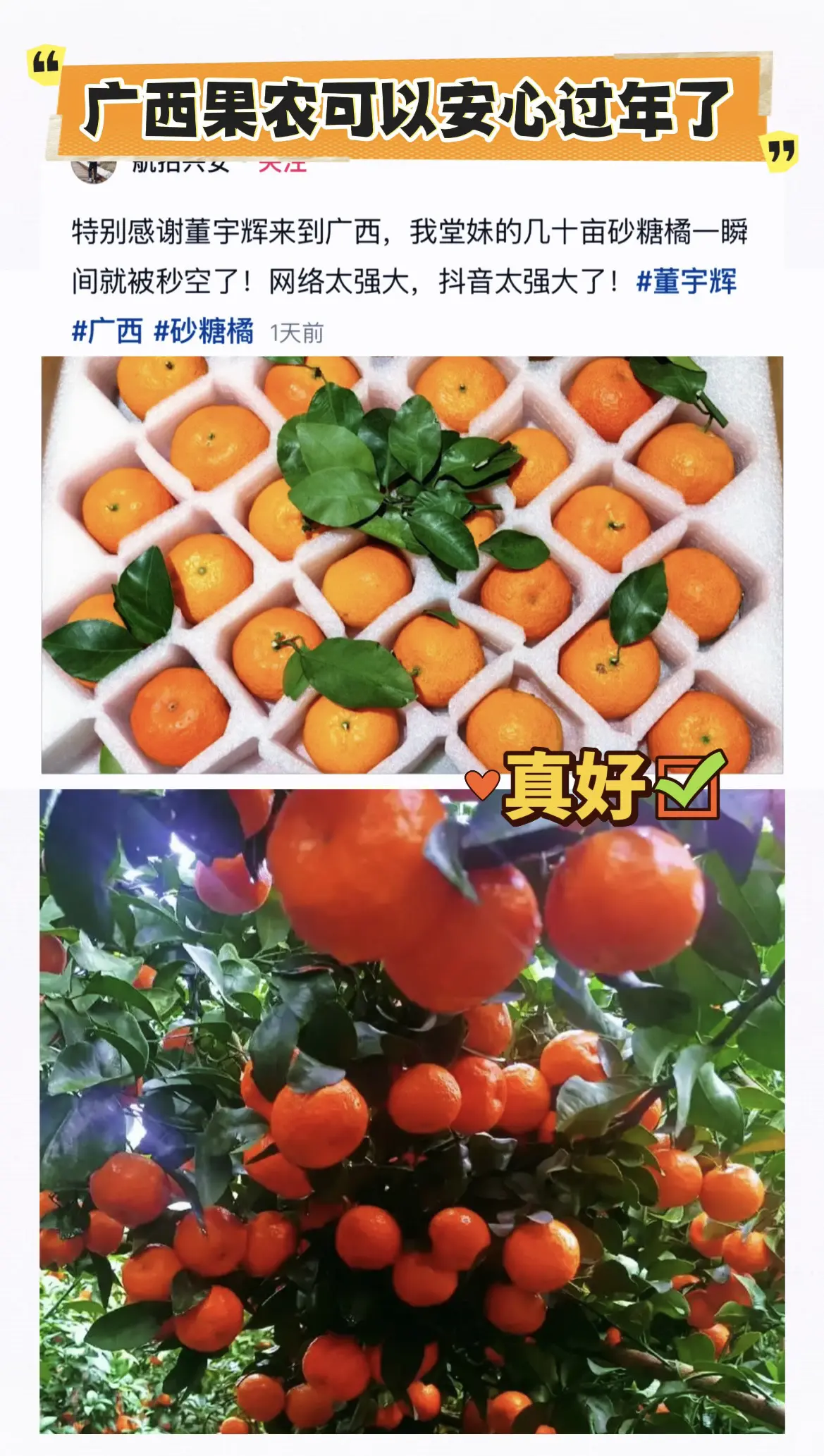 与辉同行广西行砂糖橘秒空,这下果农可以安心过年了