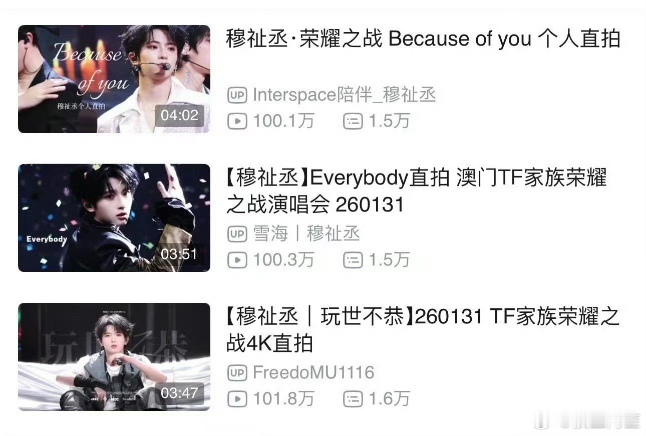 穆祉丞荣耀之战直拍首个破百万 恭喜穆祉丞荣耀之战舞台《Because of you》《Everybody》《玩世不恭》三支直拍播放量破百万!是荣耀之战所有舞台里破百万播放量前三名!越来越多的人在看到他了 穆祉丞发文回应荣耀之战输了