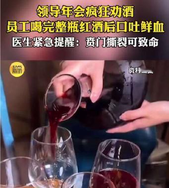 领导疯狂劝酒,员工喝完口吐鲜血。职场酒桌文化,该醒醒了! 刚入职的年轻人,年会上一整瓶红酒灌下去,直接呕血被送进ICU!这可不是电视剧里的夸张情节,而是宁波李惠利医院刚发生的真实案例。 贲门撕裂、大出血、生死一线……这场"热闹"的酒局,差点要了条年轻命! 评论区有多少人跟我一样,看到新闻拳头都攥紧了? 明明不会喝酒,却要被领导同事轮番劝:"不喝就是不给面子""能喝才能当领导"。 可谁想过,这杯酒里藏着多少风险? 医生说了,贲门就像食管的"安全阀",酒精刺激下剧烈呕吐,分分钟能把这道阀门撑破! 江西法院2020年以来就审了19起劝酒案,16条人命啊!这哪是喝酒,分明是玩命! 更气人的是,这种"酒桌服从性测试"早该进黑名单了! 劳动法写得明明白白:喝不喝酒是个人自由,强迫喝酒不仅违法,出了事还得赔钱坐牢! 宁波这个案例里,轮番劝酒的领导同事,说白了就是拿别人的健康当儿戏。要是真出了人命,他们能担得起吗? 现在最魔幻的是什么?有些人把"能喝"当能力,把"喝吐"当忠诚。 可真正的团队凝聚力,是靠互相尊重撑起来的,不是靠酒精泡出来的! 多地法院判例都说了:共同饮酒有安全保障义务,劝酒出事要担责!这不是"面子问题",是法律红线! 说句掏心窝子的:咱们打工人出门在外,谁不是爹妈的心头肉? 遇到劝酒别怂,直接说"我过敏""我吃药""我开车",实在不行搬出法律:"领导,强迫喝酒可是违法的"。 记住,拒绝劝酒不是不给面子,是给自己留条命! 企业也该长点心了!与其搞这些"酒桌文化",不如多想想怎么提升员工福利、优化工作环境。 最后想问大家:你被职场劝酒过吗?是怎么拒绝的?评论区聊聊,咱们互相支招! 也请把这篇文章转给身边的朋友,让更多人知道:酒桌不是法外之地,拒绝劝酒,从你我做起!领导疯狂劝酒 员工喝完口吐鲜血