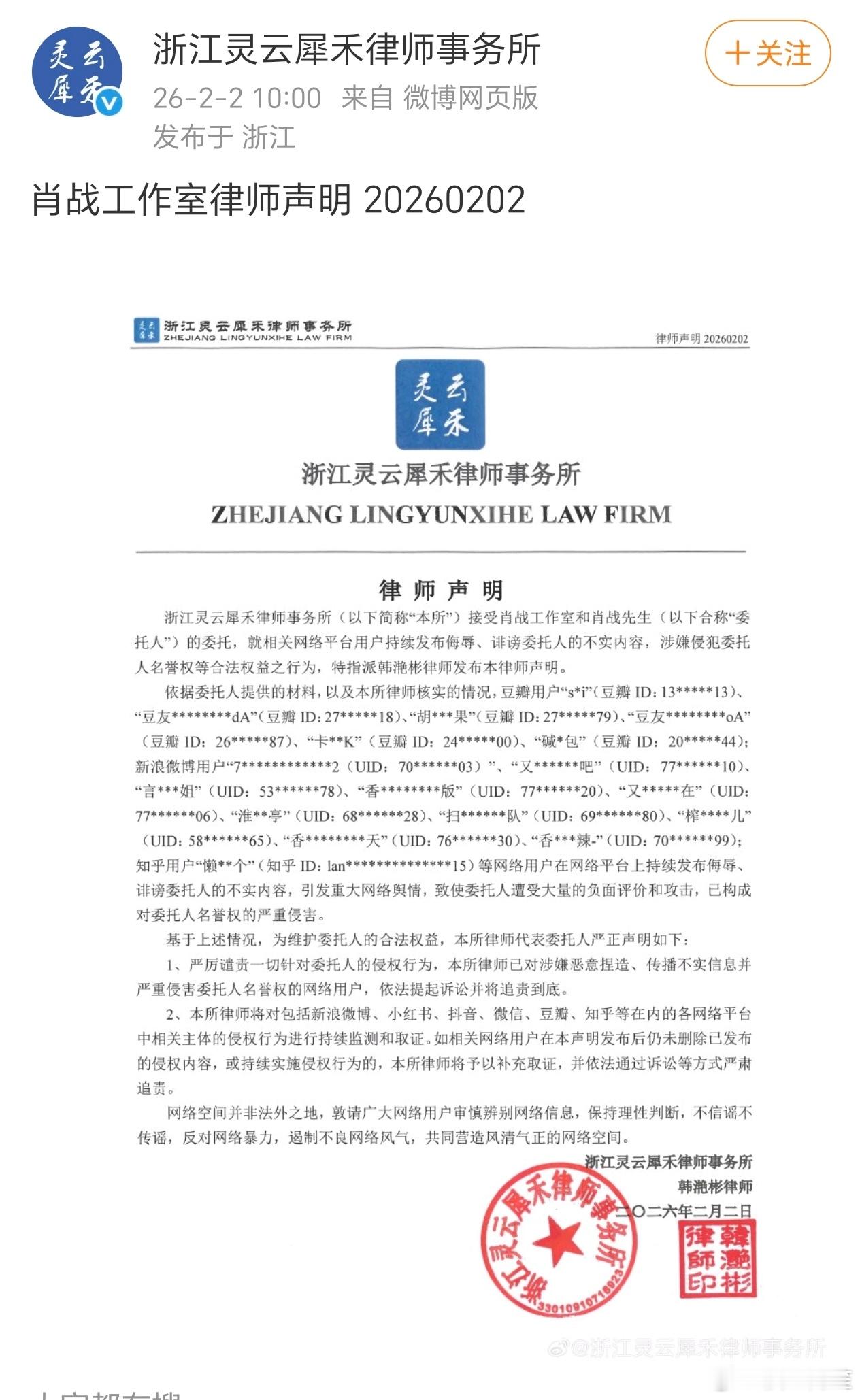 肖战工作室告嘿维权新声明,这次取证的范围包括豆瓣,微博,抖音,红书,全平台取证,这下真互联网不是法外之地了,支持帅哥维权!!!