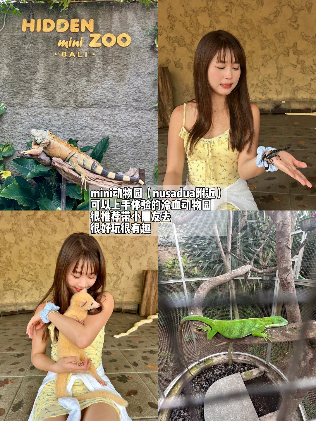 3️⃣萨努尔地区:mini bali zoo 非常推荐!可以直接上手和动物互动,萨努尔有码头,去佩妮达岛相对近,可以安排在前后两日