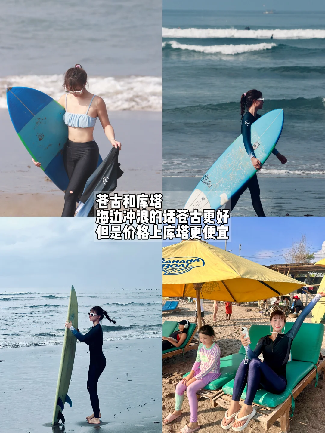 5️⃣苍古地区:沙滩冲浪务必体验,价格基本在200左右;而且villa很多,道路相对宽敞;可以去finns club、labrisa周末市集;从苍古去海神庙约2h车程