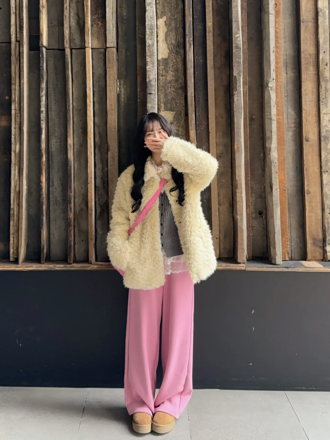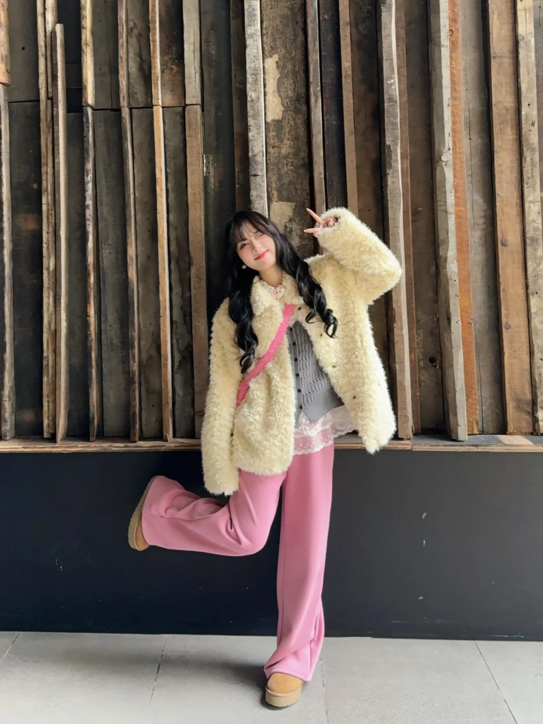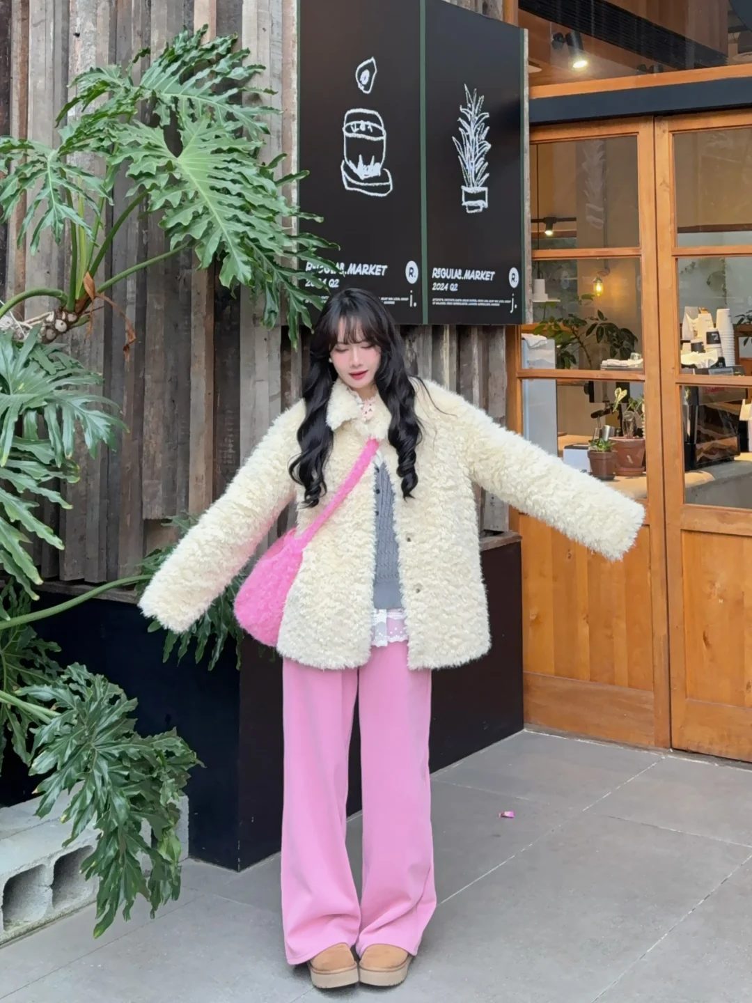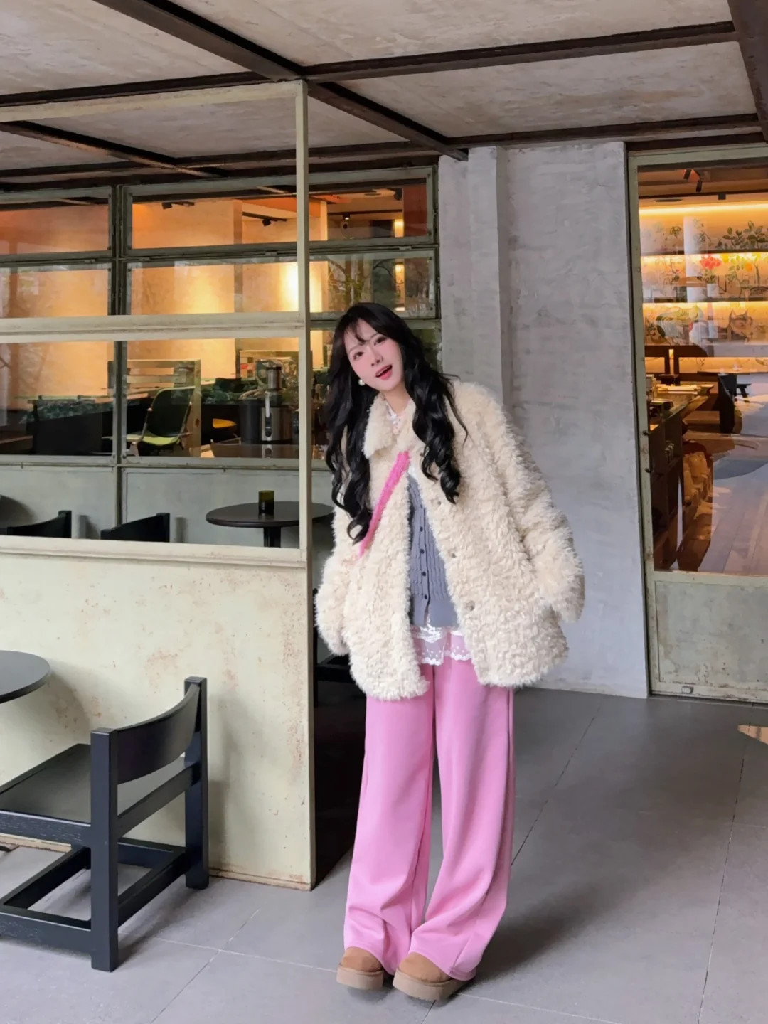 168/107左右 特别特别喜欢这套!!!很眼前一亮~ 中和了皮草的成熟 有点小活泼的感觉 灰粉➕米白的搭配还蛮有意思的🫶🏻 皮草搭配白色/棕色/蓝色裤子都挺好看的 或者卡其色棕色系的短裙➕袜套雪地靴(很可爱) 想要更成熟一些的姐妹可以搭配黑丝➕毛毛高跟鞋 也是给大家一个毛毛外套搭配思路啦