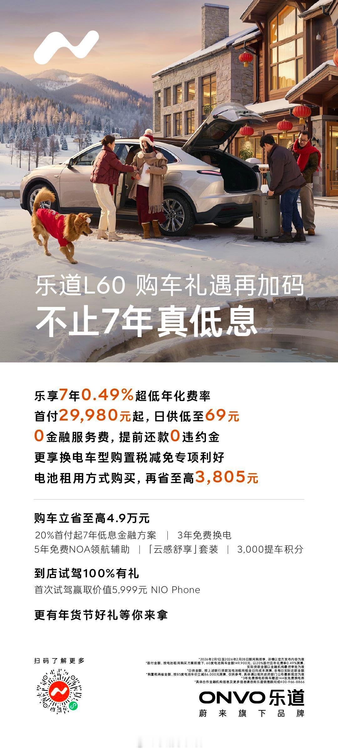 乐道开年直接掀桌子!2月购车福利太顶了7年超低息金融方案主打一个真诚无套路!L60首付29980起,享3年免费换电+5年免费NOA,综合权益至高4.9万L90首付35960起,享5年免费NOA,综合权益至高4.1万乐道2月购车王炸政策 乐道汽车
