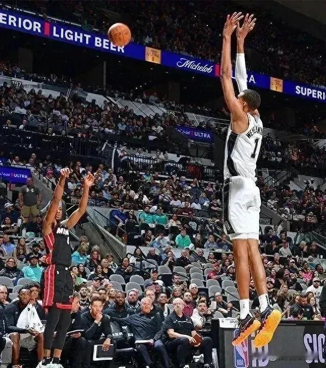 文班亚马之盖帽。 这就是顶级天赋,有身高,有臂展,有弹跳,有意识。 让你先跳,我再跳,照样能盖你,仅凭身高、臂展和弹速就能守住天空,成为防守者的噩梦。 假以时日,时机抓的更准一些,协防意识再强一些,那就不只是噩梦了,天生的防守者。 关键是,文班亚马不只是会防守,进攻也是一把好手,能运球,能投篮,能突破,能三分。