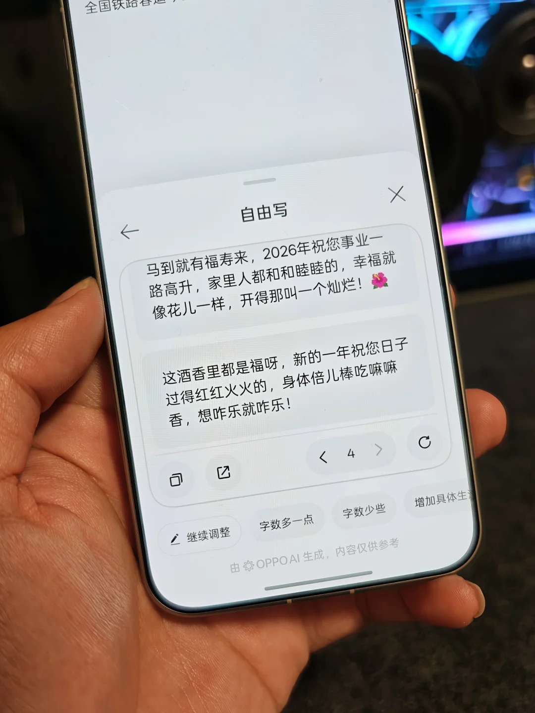 拜年词库告急?唤醒小布助手,用“自由写”功能,无论是给长辈的吉祥话还是给朋友的俏皮梗,各种风格的拜年文案瞬间生成,再也不会“新年快乐”走天下了!🧧