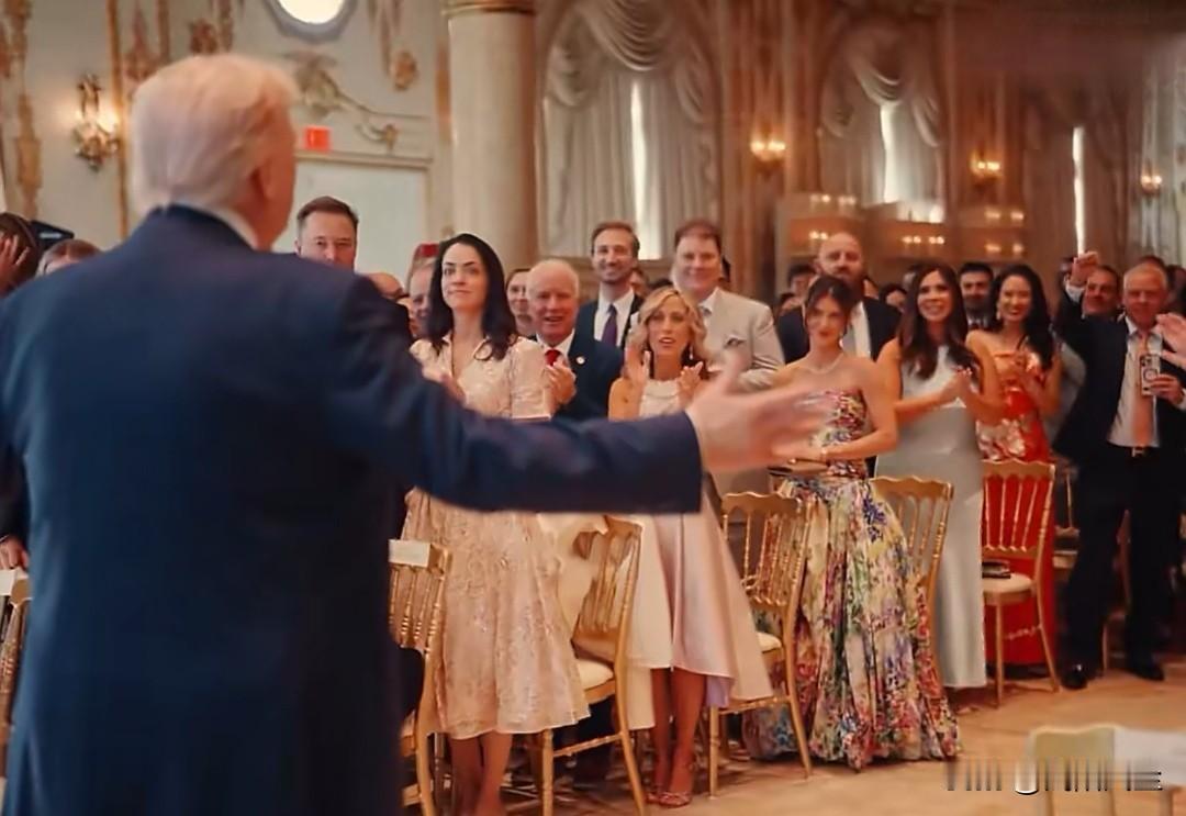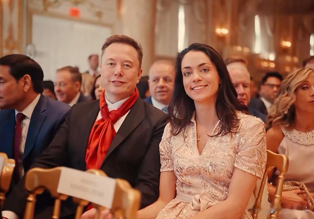 埃隆·马斯克和希冯·齐利斯在美国总统助理、副幕僚长丹·斯卡维诺海湖庄园的婚礼上。