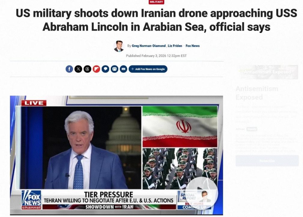 美军航母击落伊朗无人机 2026年2月3日,英国霍尔木兹海峡海事安全部门通报,一支武装快艇编队在阿曼以北30公里的霍尔木兹海峡区域,试图拦截一艘美国籍油轮。 美媒同步消息,美军在“亚伯拉罕·林肯”号航母附近,击落一架伊朗“见证者-139”无人机。 美军中央司令部发言人向福克斯新闻透露,该无人机“蓄意逼近美军航母,意图不明,行为具有攻击性”。 该发言人补充称,事发时“亚伯拉罕·林肯”号航母位于阿拉伯海,距伊朗南部海岸约805公里,无人机突然朝舰艇方向做出危险机动。 这两件事凑到一天,说白了就是双方互相试探、互相示强的戏码,没什么大惊小怪的。 先说说霍尔木兹海峡这地方,它可不是普通的海域,堪称全球能源的“咽喉要道”,全球差不多三成的海运原油、两成的液化天然气都得从这儿过,波斯湾那些产油国,九成以上的石油出口都离不开这条道。 而伊朗正好攥着海峡的北岸,相当于把这条能源命门的一半握在了手里,这也是伊朗敢跟美军叫板的最大底气。 美军自然不可能放任伊朗掌控这里,毕竟全球能源供应的主动权,直接关系到美国的全球影响力,所以才会特意在2026年1月初,把亚伯拉罕·林肯号航母打击群调往中东,事发时这艘航母在阿拉伯海,距伊朗南部海岸约805公里,看着距离不近。 但对航母来说,就是妥妥的“前沿部署”,目的就是镇住场子,保障自己和盟友的石油运输通道安全。 再看被击落的伊朗见证者-139无人机,这玩意儿说白了就是伊朗的“低成本骚扰神器”,算不上什么高端装备,但胜在灵活、便宜,伊朗经常用它来侦查美军舰艇动向,偶尔做做逼近动作,恶心恶心美军,主打一个“花小钱办大事”。 美军说这架无人机“蓄意逼近、具有攻击性”,多少有点夸大其词,毕竟一架小型无人机,真要攻击全副武装的林肯号航母,无异于以卵击石。 美军之所以二话不说就用F-35C隐形战斗机把它击落,说白了就是仗着自己装备好,一点亏都不肯吃,也想借着这个机会向伊朗示强,告诉对方“我的航母你碰不得”。 而且这也不是双方第一次在无人机上闹矛盾,早在2019年美伊紧张局势升级的时候,美军就曾击落过伊朗的无人机,当时的说法也是“无人机具有攻击性”,套路都一模一样。 另一边,阿曼以北30公里的霍尔木兹海峡区域,武装快艇编队试图拦截美国籍油轮,这事儿不用想也知道,大概率是伊朗支持的力量干的,毕竟伊朗没能力也没必要派正规军舰硬碰硬,用小型武装快艇搞突袭、搞骚扰,是伊朗的拿手好戏。 这种快艇体型小、速度快,在狭窄的霍尔木兹海峡里灵活得很,就算拦不住油轮,也能打乱美军的部署,传递自己的态度。 而且美军当天也确实派出了麦克福尔号导弹驱逐舰,在空军支援下护送这艘油轮脱离了危险,这一套操作下来,双方都没真的动手,却都达到了自己的目的——伊朗展示了自己在海峡的影响力,美军则彰显了自己保护油轮的能力。 其实说到底,美伊双方都不想把事情闹大,毕竟真要是开战,对谁都没好处。 伊朗虽然掌控着霍尔木兹海峡,但国力和军事实力远不如美国,真要硬碰硬,吃亏的肯定是自己,所以才会用这种“非对称作战”的方式,用无人机、武装快艇这种低成本装备,不断试探美军的底线,争取谈判筹码。 而美军虽然装备先进,航母、战机一应俱全,但也不敢轻易对伊朗动手,一方面是因为伊朗有能力封锁霍尔木兹海峡,一旦海峡被封,全球油价会瞬间飙升,美国自身也会受到巨大冲击,另一方面,美军在中东的部署本就分散,真要开战,也未必能占到多大便宜。 而且从当时的情况来看,白宫也证实了美国总统特使与伊朗方面的对话日程没有变化,这也能看出来,双方的这些动作,更多的是一种姿态,是为了在谈判桌上争取更有利的条件,而不是真的想撕破脸开战。 毕竟对双方来说,保持这种“斗而不破”的状态,才是最符合自身利益的选择,既展示了自己的实力,又不会引发全面冲突,可谓是“各取所需”。