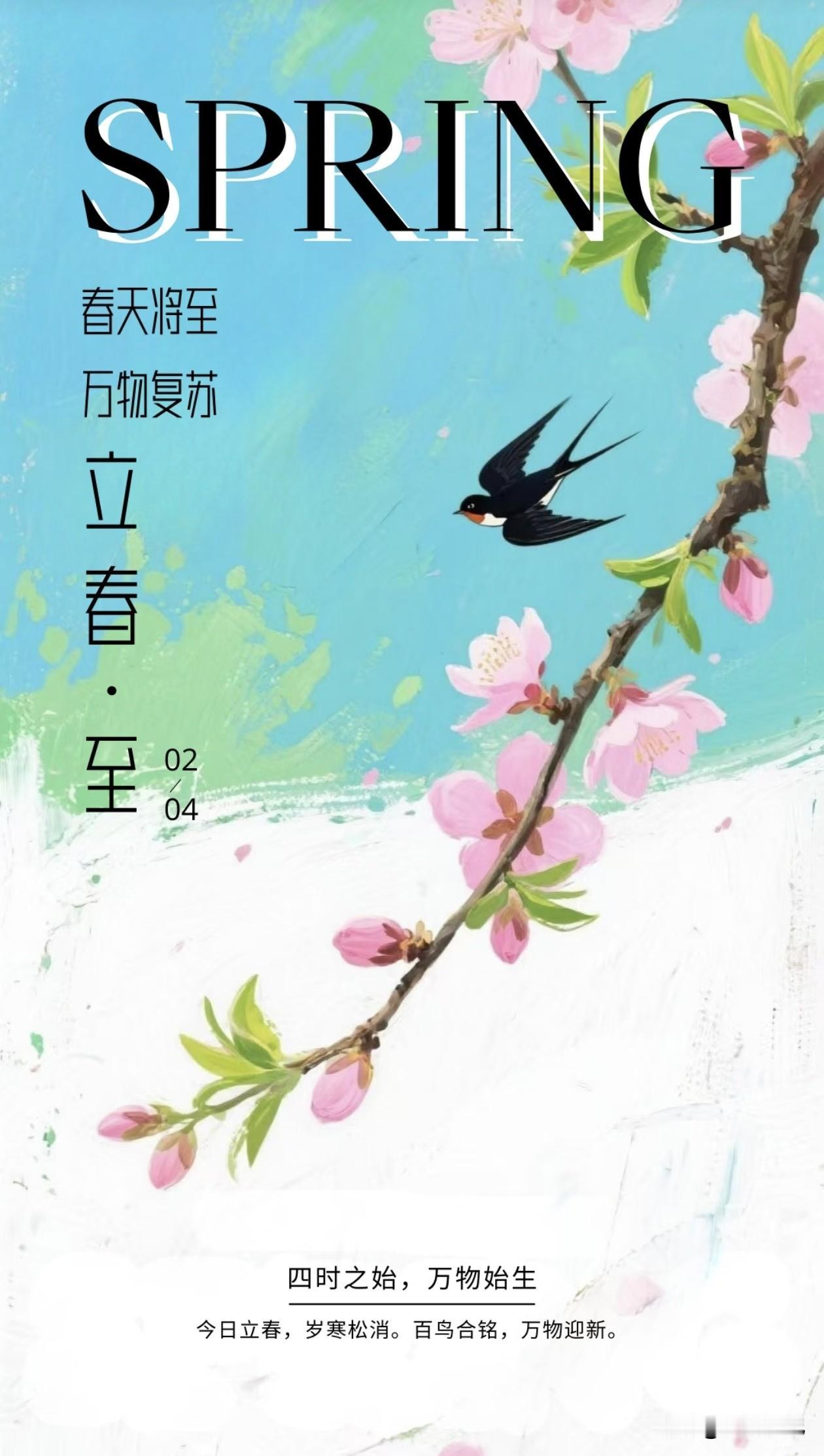 立春 今日立春,风里藏着解冻的讯号。 心,像被什么轻轻拨了一下, 漾开一圈圈名为“期待”的涟漪。 春色漫进窗棂,日子添了诗意, 嘴角的笑,是不自觉的回应。 立是序曲,春是希望。 一年的蓝图,在此刻铺展。 愿这旅程,繁花相送, 每一帧,都是独一无二的风景。 不负春光,肆意生长, 活出生命的张力与滚烫。 立春时间 立春的日子 立春节气 立春图片 立春美图 立春祝福语 今日立春 万物起始一切更生