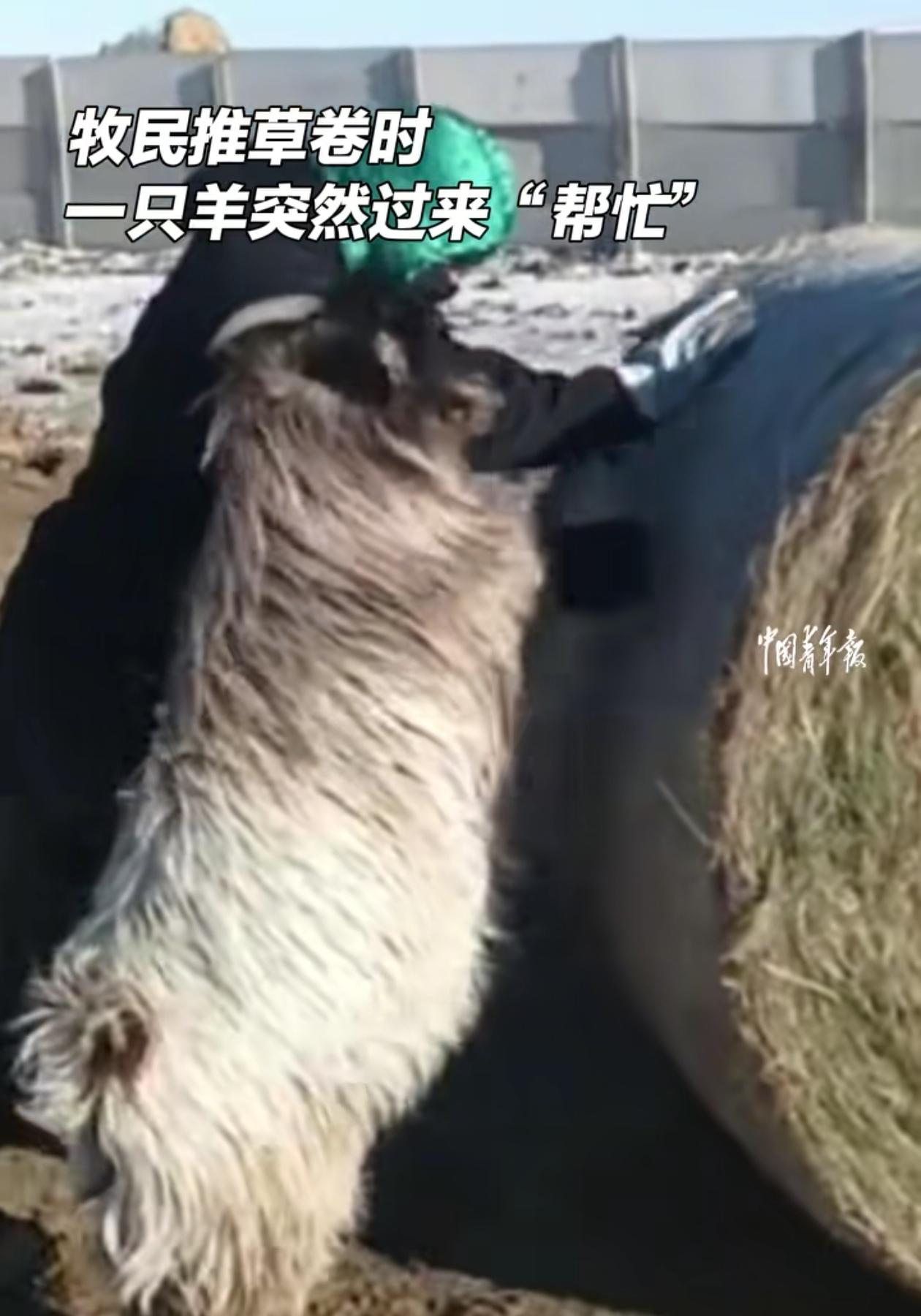 太有灵性了!.内蒙古锡林郭勒一牧民在推草卷的时候,旁边小羊突然站起身子,两个前蹄靠在草卷上,跟着一起用力推了起来。男子:“之前从来没有这样过!” 这个草卷其实还是蛮大的,男子个头不矮了,但草卷却比他还要高一点。如果不是形状是圆的,可以在地上滚,一个人还真推不太动。 但让人没想到的是,这只小羊可能是看出主人的吃力,所以有样学样,跟着帮主人分担了起来。 主人看到后都有点懵了,又接着推了两三秒后就停下了手中的工作,转过身来将小羊抱进了自己的怀里,满脸都是带着宠溺的笑意。 说实在的,这只小羊羔的帮忙并没有起到多大作用,但它的这个聪明劲确实让人佩服。主人养它也有很长时间了,几乎是从小养到大,说没有感情是假的,但像这样站起来帮忙,确实是今天头一次见。 这只有灵性的小羊让网友们都看呆了,有人觉得它表现的这么乖巧,是不是害怕过年被下锅啊?也有网友觉得,它都这么聪明了,干脆就一直养着算了。 主人愿意给它一个大大的拥抱,真是看的人暖暖的,也说明他可能心里已经把小羊当成特殊的家人了。 不得不说,这只羊真是凭借自己的实力拿到了“免死金牌”。今天这事儿一出,主人要想宰它就得掂量掂量,毕竟有灵性的小动物,谁不喜欢?
