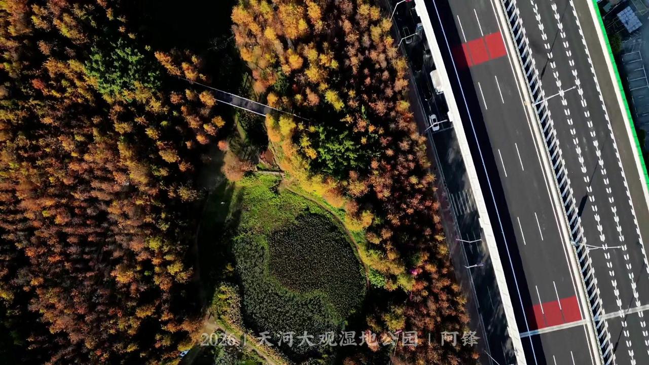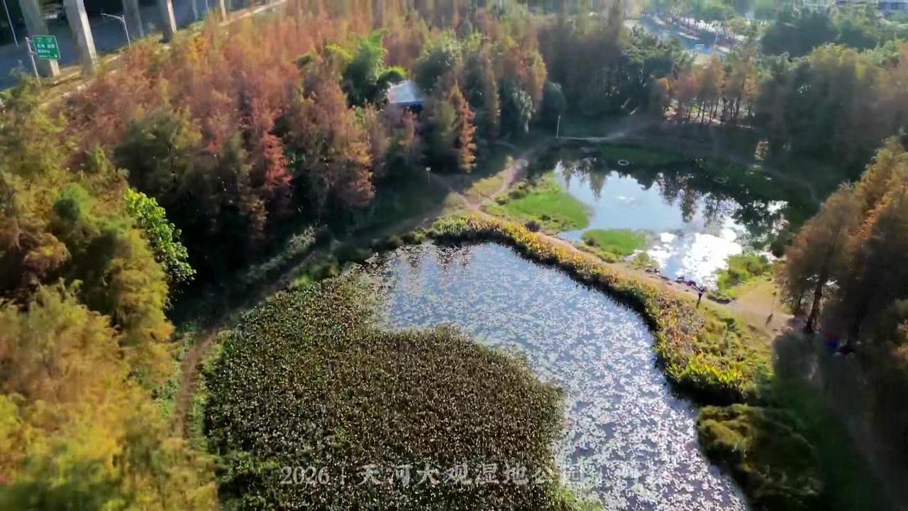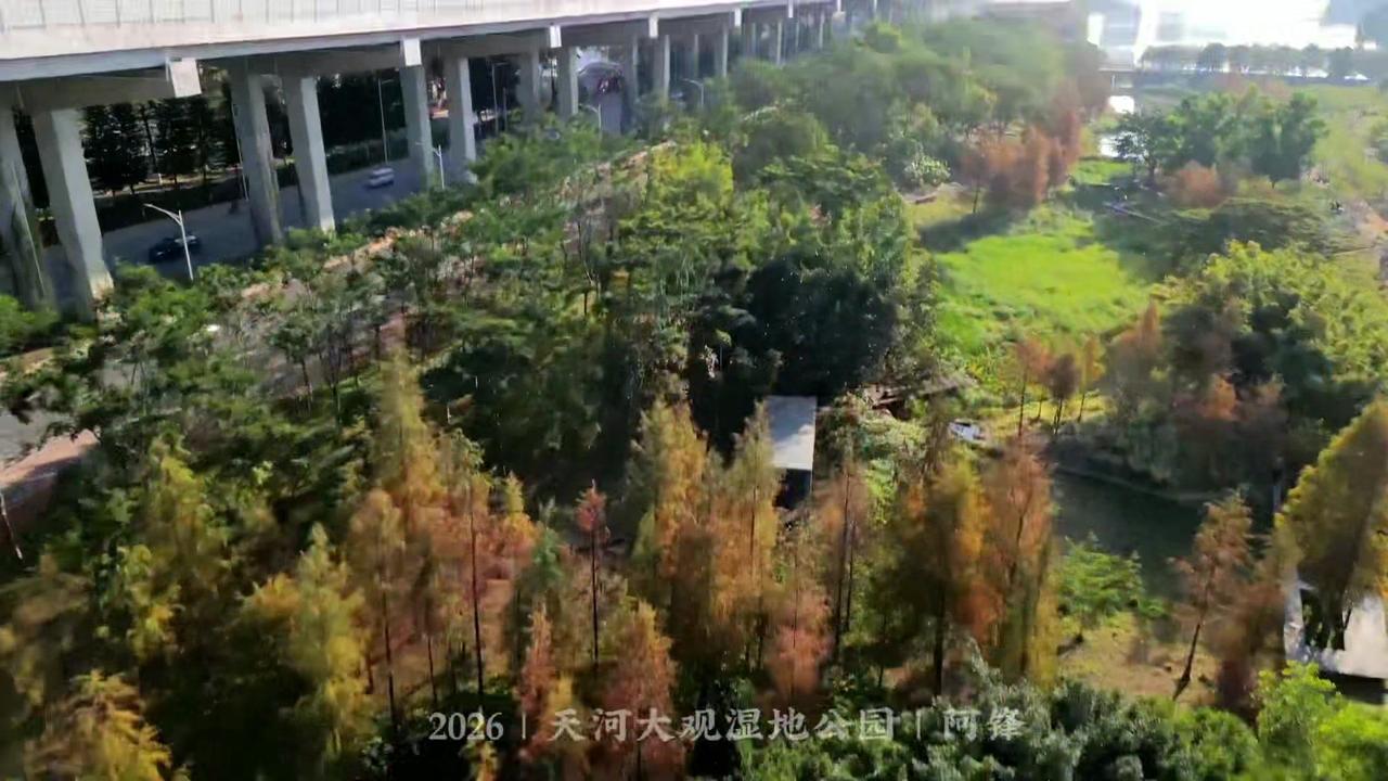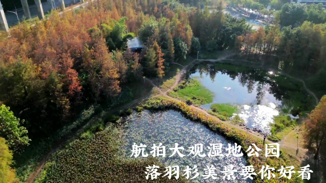 🌲广州最大落羽杉藏在大观湿地公园!无人机视角下,水杉红似火,倒映湖面美到窒息,