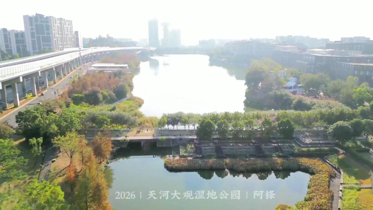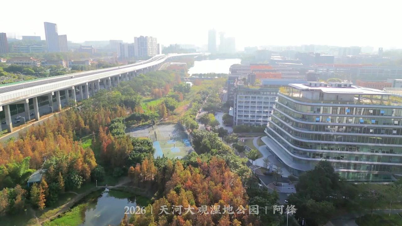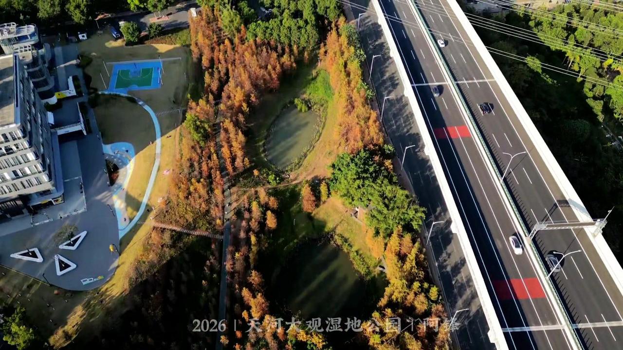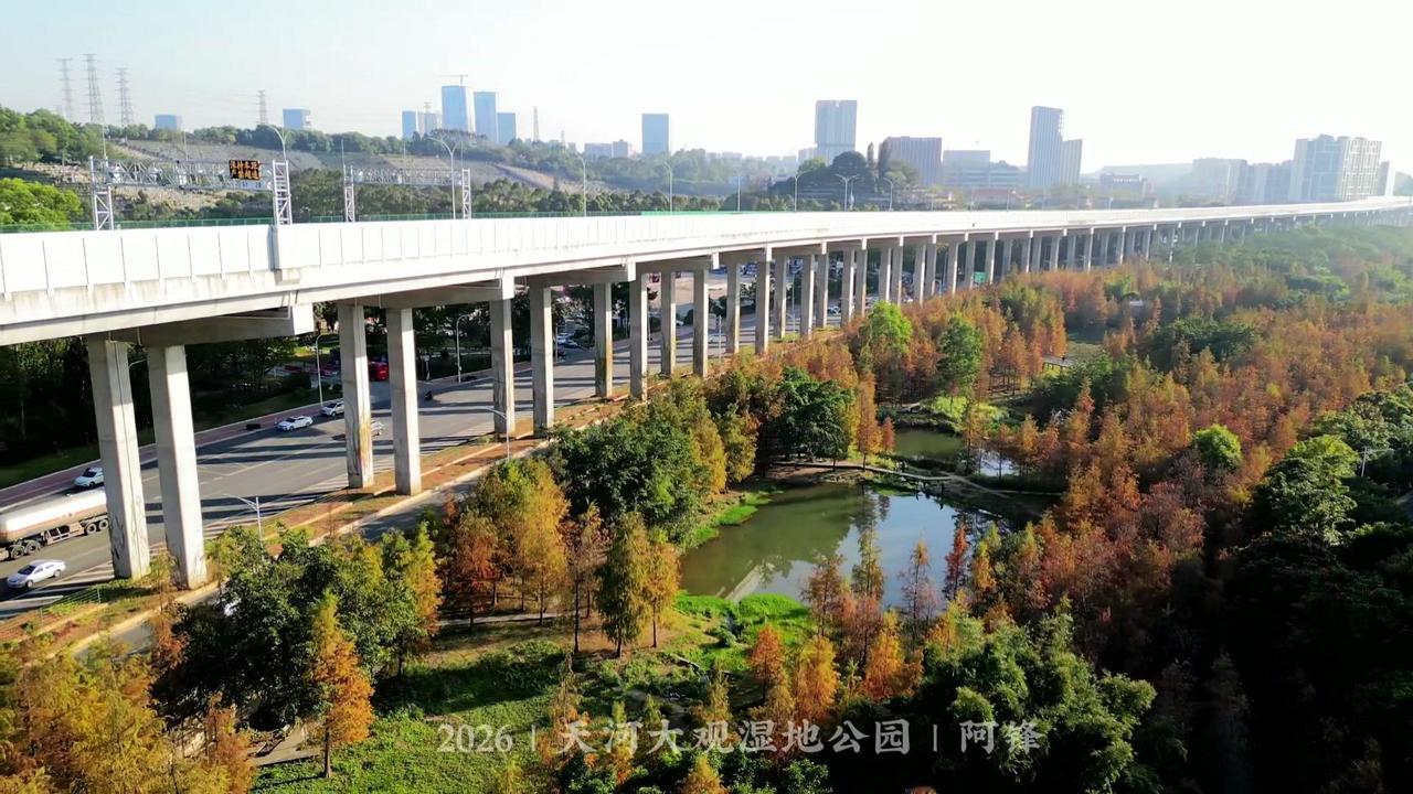 🌲广州最大落羽杉藏在大观湿地公园!无人机视角下,水杉红似火,倒映湖面美到窒息,
