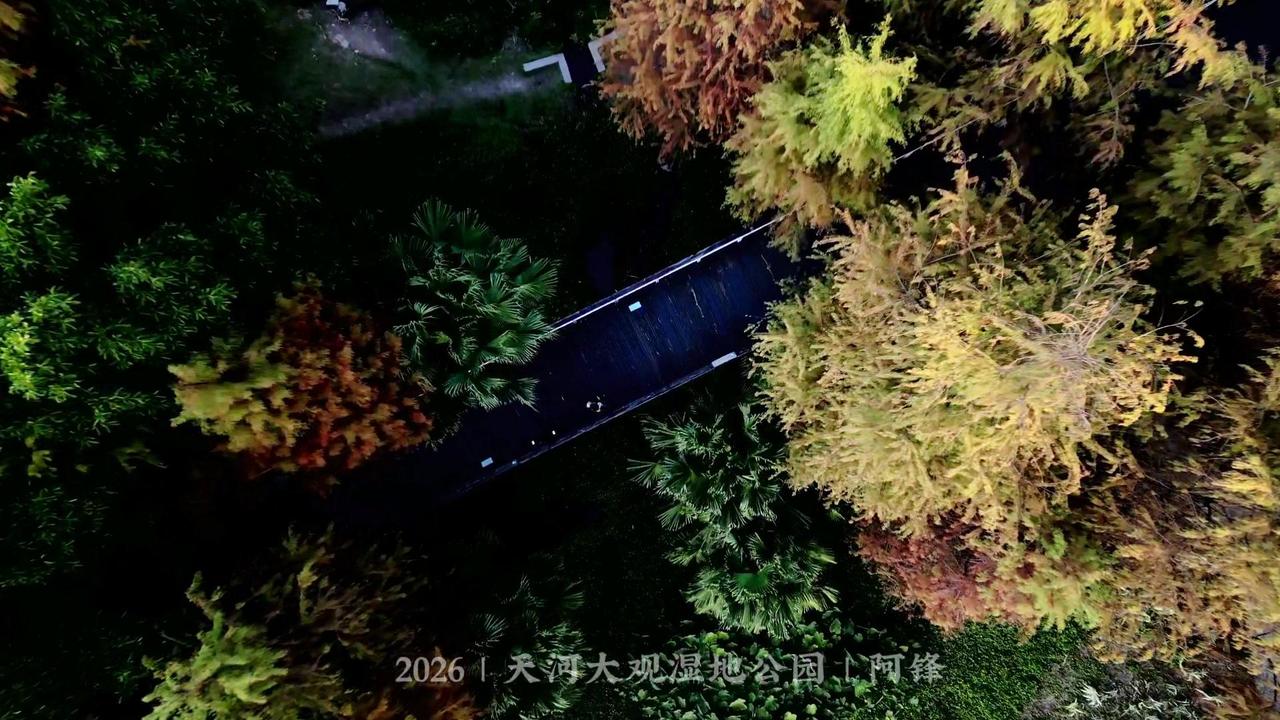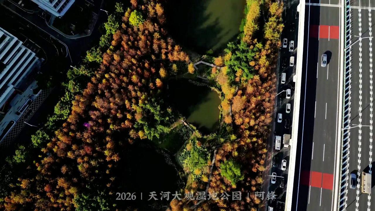 🌲广州最大落羽杉藏在大观湿地公园!无人机视角下,水杉红似火,倒映湖面美到窒息,随手一拍都是壁纸级画面~