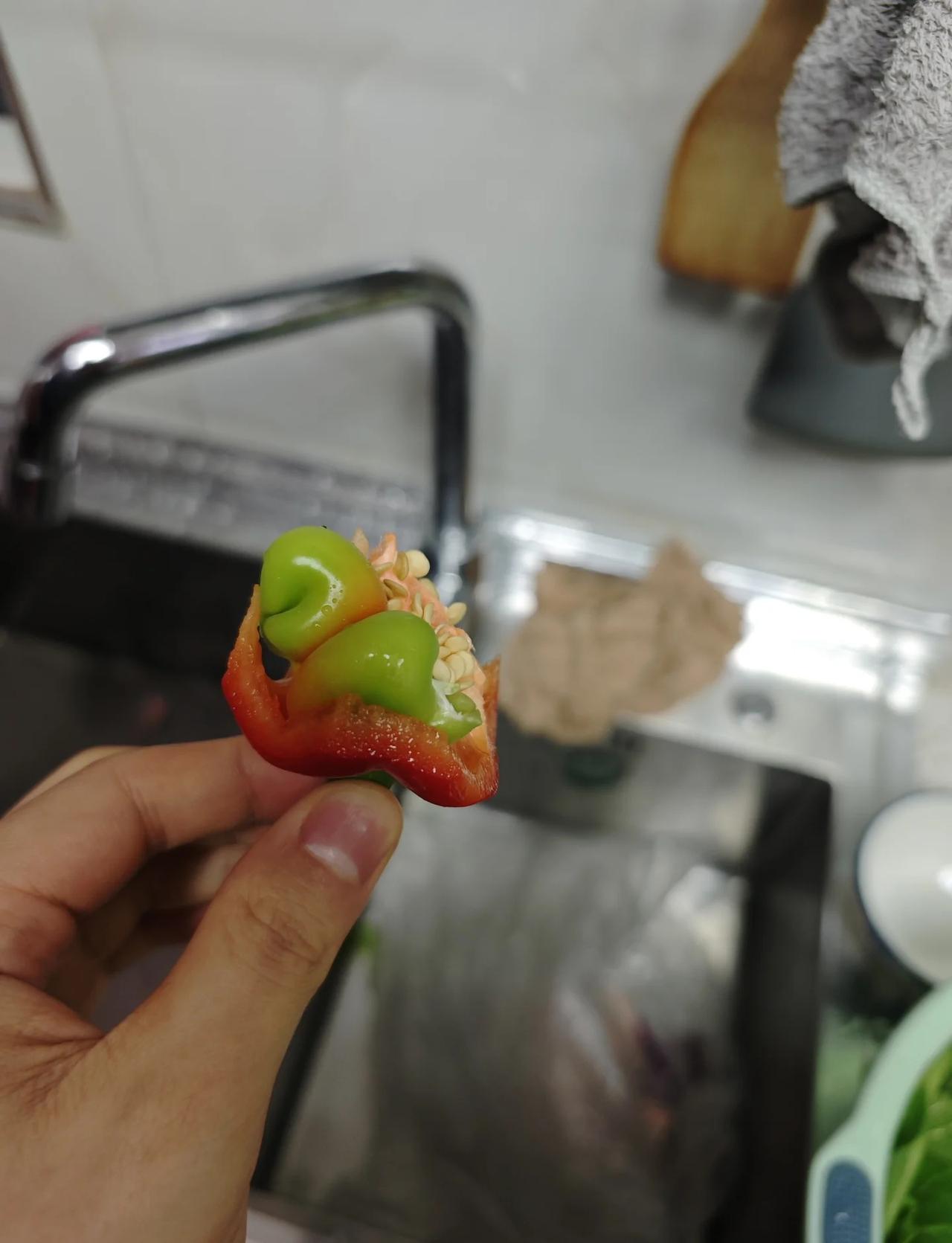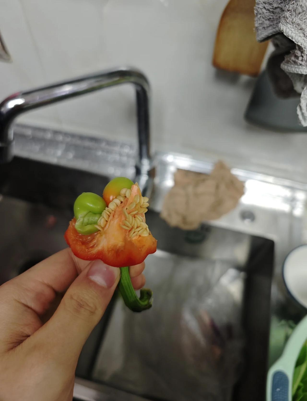 这年头辣椒都要响应国家政策生二胎! 笑不活了,切辣椒发现了一个辣椒中的卷王,偷偷