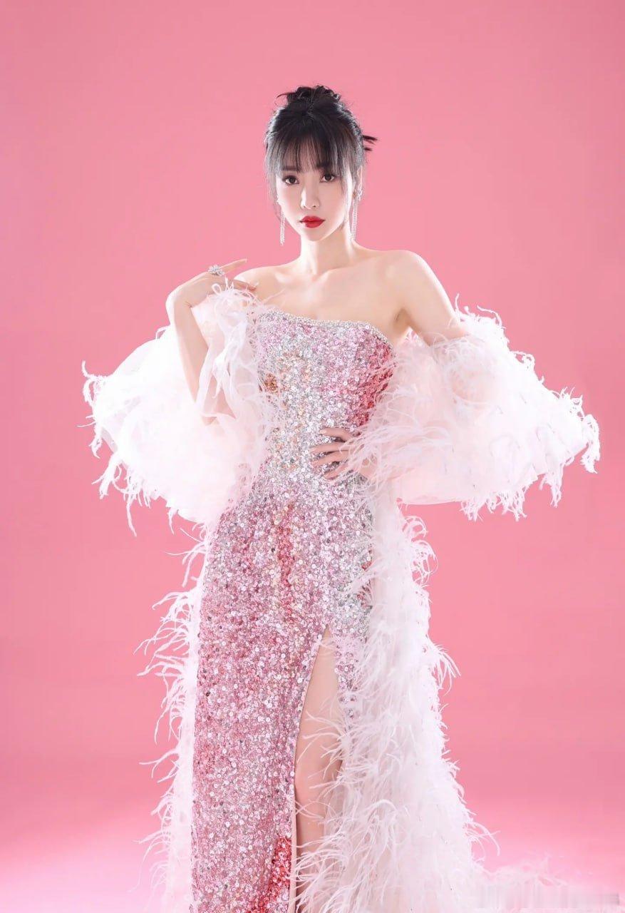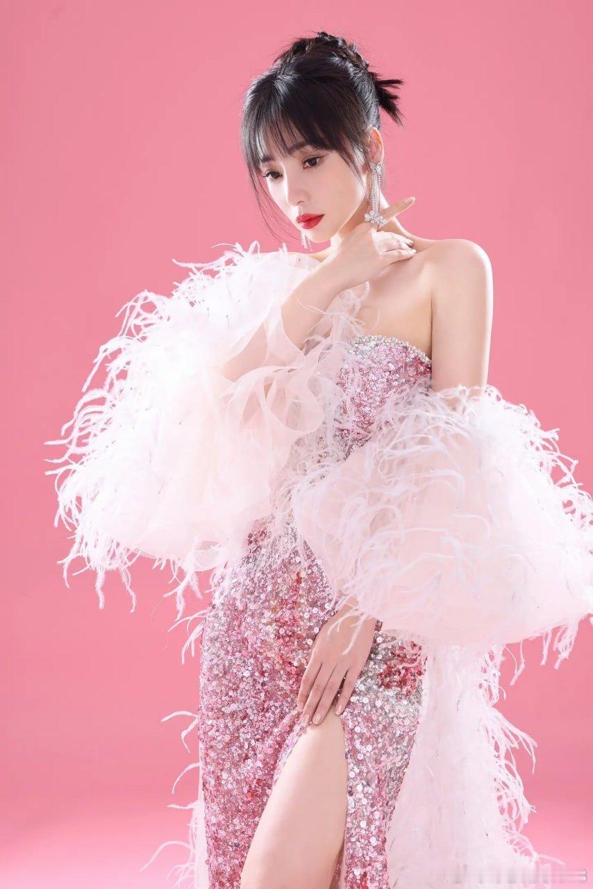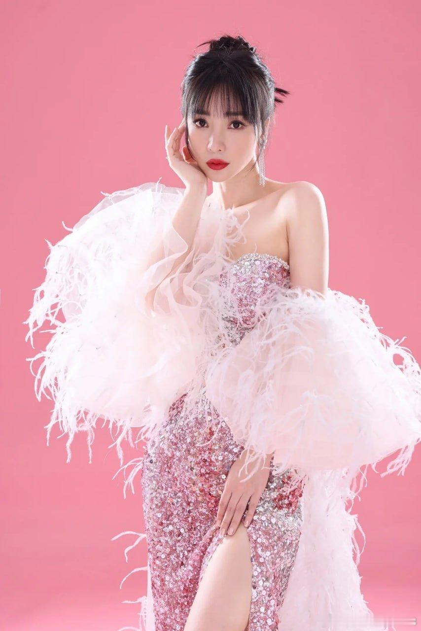 写真柳岩羽毛披风漏肩亮片长裙惊艳全场