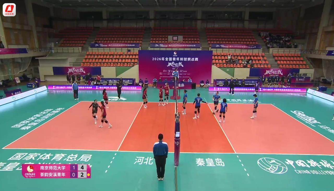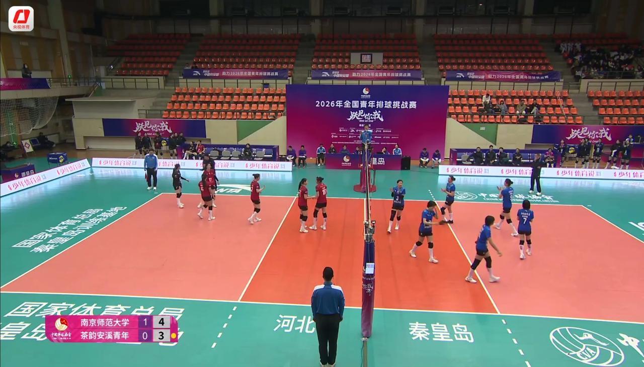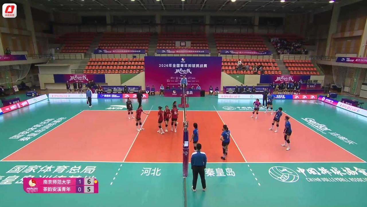 【全青女排挑战赛】南京师大——福建青年 实时战况: 2月4日下午19:00时,全国青年女排挑战赛南京师大——福建青年的比赛准时进行。第—局开始.南师大先发球,1:0,1平,2平,3平,4平,高雅背飞。5:4,戴思聪。5平,7:5,南师大领先。8:5,福建青年暂停。8:6,9:6,高雅快攻得分。9:7,10:7,11:7,12:7,姚欣悦。12:8,13:8,13:9,14:9,14:10,福青得分。15:10,16:10,戴思聪。17:10戴思聪。福青二次暂停。18:10,19:10,南师大发球得分。20:10,21:10,南师大领先。22:10,戴思聪。23:10,戴思聪连续得分。24:10,戴思聪。25:10,南师大胜第一局,大比分1:0,南师大领先! 第二局比赛正在进行中……