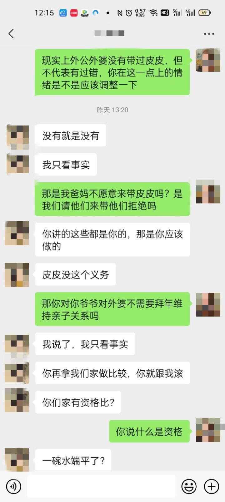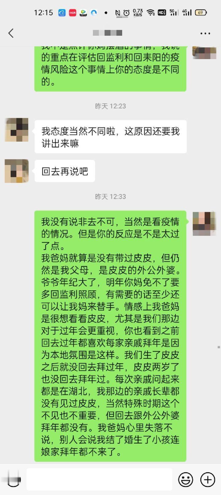 坐标广东,婆家是湖北的,娘家是湖南的,孩子2岁一直没有去过姥姥家,想利用初二路上人少,带孩子回趟娘家,老公坚决拒绝,提出如果坚持带孩子回去,就离婚,到底该怎么办好? 这是一位网友发的求助贴,贴子内容简单介绍如下。 她和丈夫在广东生活和工作,孩子在19年出生,刚好赶上疫情,他们那一年就留在广东过年,去年春节他们带着孩子回到了爷爷奶奶家,考虑到防控原因没有回娘家。 贴主有两个姐姐,父母已经退休,一直帮着大姐和二姐带孩子,她孩子出生后,母亲来照顾了两天,就回去帮二姐照顾孩子了,从孩子都出生到现在,一直是奶奶在带。 今年春节,贴主想带着孩子去娘家,姥姥想孩子,丈夫不同意,表示你想回去看父母可以,但不要带上孩子,孩子平安放在第一位,没必要来回折腾。 她认为,娘家很重视过年一家人团聚,利用初二初三人少的时候,回去看看也完全没问题,父母虽然没照顾过孩子,但对孩子也有感情,而且亲戚们都没有见过孩子,父母心里很失落。 丈夫情绪激动起来,表示丈母娘没有一碗水端平,就不要跟婆家比较,两人争执到最后,提出了离婚。 看了这个帖子,网友们议论纷纷。 有人说:“赶紧离婚吧,夫妻俩思想不在一个频道,丈夫对丈母娘家积怨已深,而女人考虑的是娘家父母的面子,讲真,用孩子的平安当赌注,真的无法理解,如果两人用这样的方式沟通,离婚是早晚的事。” 也有人说:“丈夫的态度不好,但妻子有点拎不清,如果父母真心想孩子,完全可以利用平时的时间来看望,孩子在路上有一丝的风险,都会让父母后悔。” 还有人说:“丈母娘确实一碗水没端平,能够照顾两个女儿,为何对这个小女儿一直不管不问,2年的时间完全可以来照顾一下,也难怪女婿会生气,这是人正常的情感表达。” 从聊天记录可以看出,丈夫一开始是支持妻子去娘家的,甚至也愿意陪妻子一起去,他的底线是不让孩子去,原因有两个,一个是为了孩子安全,第二个是丈母娘没有一碗水端平。 父母对孩子的爱,不患寡而患不匀,这也是很多父母需要注意的地方。 从情感角度来说,人都有渴望被爱的需求,如果自己的需求长期没有得到满足,很容易产生情绪,甚至引发生生活矛盾,比如这位男子,小两口生活不容易,一直是婆婆在照顾,婆婆年纪大了,如果丈母娘能稍微帮一下,可能家庭日子更好过一些,这事是他的情绪点。 那么妻子该如何避免这个矛盾?我们没必要去要求父母,也没有这个义务,但可以做好自己。 首先,学会换位思考,理解丈夫的感受,找到更好的方法来平衡,比如等春运过去,接父母来家里小住,满足父母想见孩子的愿望。 其次,安抚父母情绪,告诉他们以孩子健康为重,感情在心里,没必要在一时表现,然后带着孩子和丈夫,一起给父母拜年,现在网络发达,真的有很多种方式可以解决。 夫妻之间,因为一件小事闹到要离婚,说到底是思维太自我,学会换位思考,是每个人需要的成长。 对此你怎么看?你觉得他们离婚合适吗?