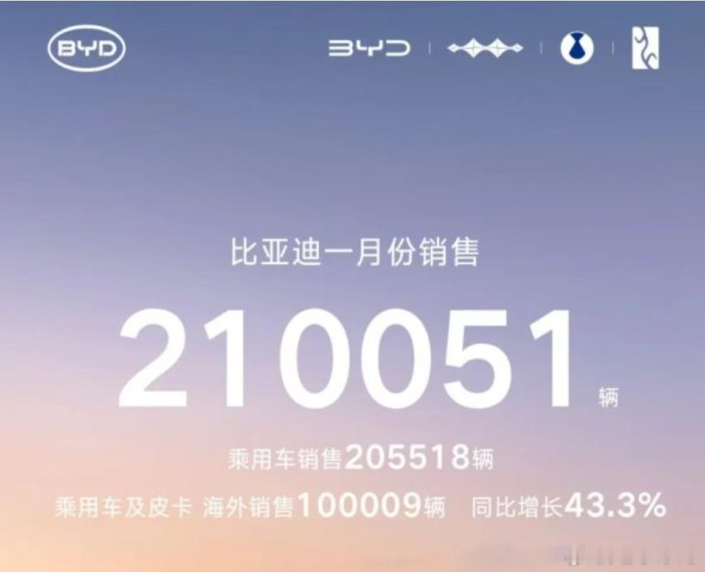 比亚迪汽车一月销量为21万辆,是唯一月销超20万的新能源车企,但这份成绩单的背后也有担忧,同比下降30.1%,环比下降44.72%;其同、环比销量下滑幅度是一月份老牌车企里最大的。乘用车和皮卡在海外销量为100009辆,占比近半,应当能排在自主品牌本月出口销量第二名,说明其国际化战略正在加速落地,一定程度上对冲了国内市场的波动。王传福之前说“技术领先度不如前几年”,这句话在1月得到了印证,即便推出秦PLUS/秦L/宋Pro、海豹05/06的长续航版,也没带动多少消费热情。接下来比亚迪能不能找回状态,就看之前网传的“重磅技术”啥时候落地了。