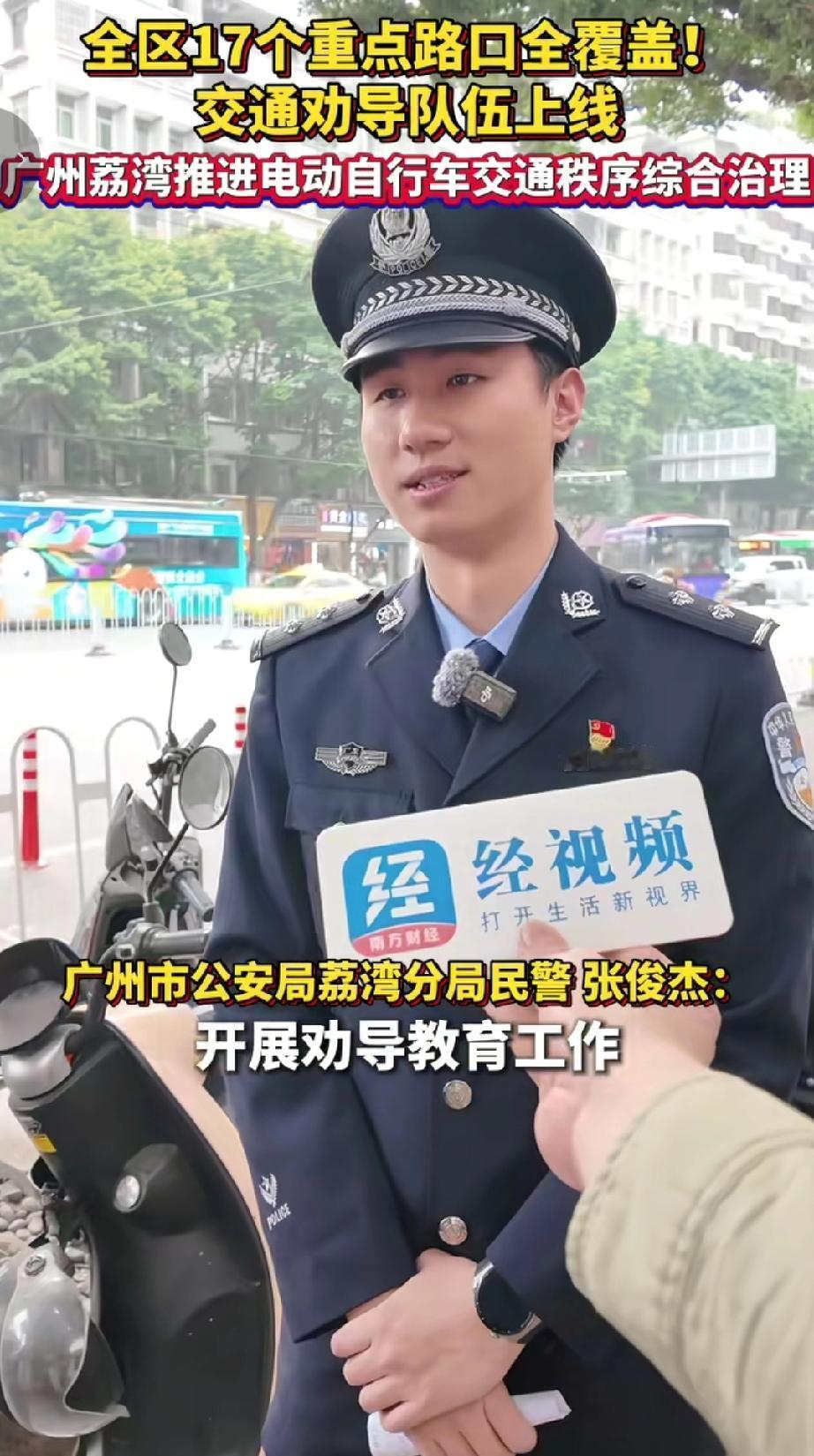 2026年2月4日广州荔湾区推进电动自行车交通秩序综合治理,当地组建了“交警+专职劝导人员+志愿者”的三位一体劝导执法队伍,还发动各街道属地志愿者一同加入劝导工作。参照3个示范路口的标准,把劝导模式推广到全区17个重点路口,对电动自行车驾乘人员的违规行驶问题开展常态化劝导教育。(来源于@广东经视)