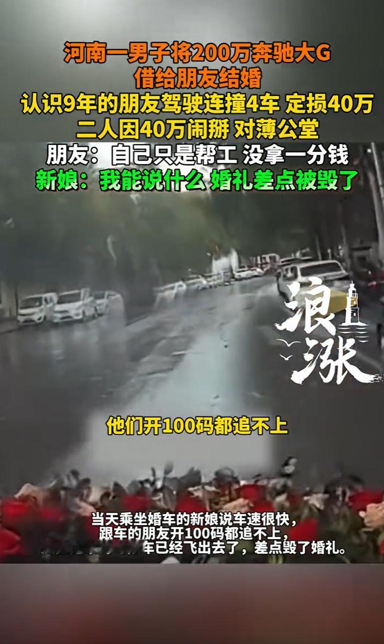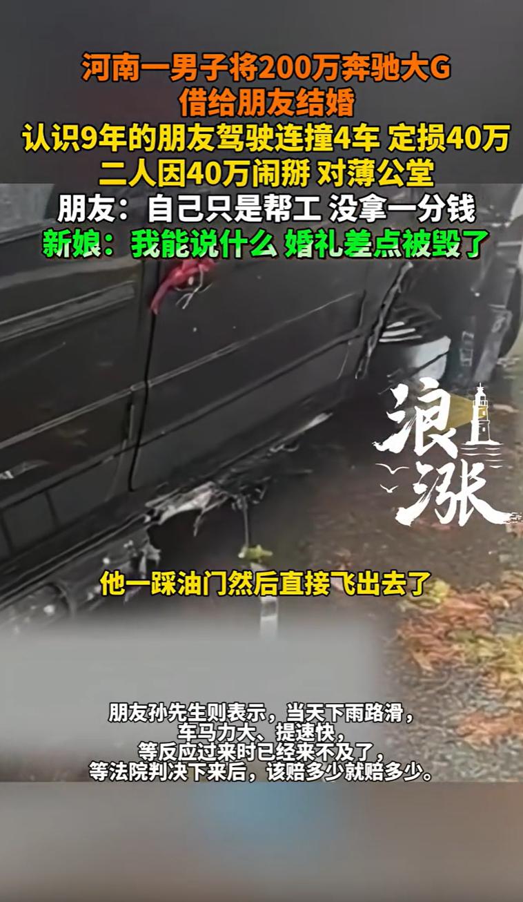 河南,一男子忍痛将新买的价值200万的奔驰大G借给相识九年的好友作婚车头车。不料,婚礼当日,好友因心急赶路、操作失误,车辆瞬间失控,猛烈撞向路边正常停放的四台汽车,现场一片狼藉,喜事险些变悲剧。事后,车辆定损高达41万元。顾及旧情,男子主动退让,同意维修时使用较便宜的拆车件,节省了近一半费用。然而,当车辆修复完毕,好友却迟迟不愿结账,最终抛出一句:“我和媳妇离婚了,现在没钱。”此举令男子彻底心寒,怀疑对方以“假离婚”手段逃避债务。如今,昔日称兄道弟的好友,将对簿公堂。 据悉,2025年10月,孙磊的婚期将近,婚车是门面,他想用最好的。 孙磊想起好友朱明那辆刚购入不久的黑色奔驰G级越野车,市场价近200万元,气派十足。 孙磊拨通了电话:“兄弟,十月我结婚,头车想用用你的大G,撑撑场面!” 朱明略有迟疑,但转念一想,对方是相识九年的朋友,结婚是人生大事,这个忙得帮。 一番叮嘱“小心驾驶”后,他爽快地将车钥匙交到了孙磊手中。 婚礼当天,秋雨淅沥,路面湿滑,孙磊亲自驾驶着这辆黑色大G作为头车,载着新娘,带领车队驶向典礼酒店。 据事后乘车的新娘描述:“车速特别快,后面跟车的朋友都说,他们开100码都追不上他。” 突然,意外发生,车辆行至某路段时,因驾驶人孙磊操作不当导致车辆失控,猛然撞击了路边正常停放的共计四辆汽车。 经交警部门现场勘查,认定驾驶人孙磊未确保安全驾驶,负事故的全部责任。 面对询问,孙磊的解释充满懊悔:“当时路很滑,开车有点大意了。提速起来,想刹车的时候也刹不住了。” 事故后,朱明的爱车与被撞的四辆车均被拖往修理厂,初步定损结果,仅朱明的大G维修费用,加上其他四辆车的损失,总计高达41万余元。 面对天价账单,孙磊最初并未推诿,表示会负责。 在具体维修方案上,朱明做出了第一次重大让步,考虑到孙磊的经济压力和多年的朋友情分,他主动同意维修时不强求全部使用原厂全新配件,而是允许使用部分质量相当的“拆车件”,即从其他同款事故车上拆卸下来的未损坏二手零件。 这样操作,预计能节省近一半的费用,能将总花费控制在20万元左右。 朱明心想,自己吃点亏,能帮朋友减轻负担,维系情谊,值得。 车辆在修理厂历时数月逐步修复。 期间,朱明多次与孙磊沟通,孙磊起初态度尚可,但提及具体支付时便开始闪烁其词。 朱明心里开始打鼓,但仍选择相信朋友。 终于,车辆维修完毕,可以结算提车了,朱明通知孙磊去支付维修款。 然而,孙磊抛出了一个看似“无法反驳”的理由:“我跟我媳妇儿离婚了,现在没钱赔。” 离婚?朱明难以置信,此前毫无征兆,偏偏在需要承担巨额赔偿时离婚? 朱明不禁怀疑,这会不会是孙磊精心策划的金蝉脱壳之计?目的是将个人债务与夫妻共同财产切割,让索赔陷入僵局。 朱明试图联系孙磊妻子,发现对方已更换联系方式。 与其他共同朋友打听,也只得到含糊其辞的回答。 孙磊则除了“没钱”二字,不再给出任何明确的还款计划或诚意协商的态度。 多次沟通无果后,朱明下定决心,一纸诉状将孙磊告上法庭,要求孙磊赔偿车辆维修费等共计41万余元及相关利息。 面对起诉,孙磊声称自己从未想过逃避,会根据法院判决结果进行赔偿。 但这在朱明看来,更像是诉讼压力下的缓兵之计,缺乏主动解决问题的诚意。 那么,从法律角度,这件事如何评价呢? 《民法典》第1209条规定,因租赁、借用等情形机动车所有人、管理人与使用人不是同一人时,发生交通事故造成损害,属于该机动车一方责任的,由机动车使用人承担赔偿责任;机动车所有人、管理人对损害的发生有过错的,承担相应的赔偿责任。 本案中,事故直接原因是孙磊在雨天“操作不当”,交警已认定其全责。 朱明出借车辆给持有合法驾照的多年好友,无法预见其鲁莽驾驶,不存在明知车辆缺陷或驾驶人不适格等法定过错。 所以,41万余元损失应由孙磊个人承担,朱明无需赔偿。 又《民法典》第1064条规定,夫妻共同债务包括为家庭共同生活所负债务。 本案债务产生于孙磊本人婚礼期间,婚礼开支与安排明显属于夫妻共同生活范畴,故因此产生的侵权赔偿应定性为夫妻共同债务。 即使孙磊已办理离婚,结合《民法典》第1089条等规定,该债务仍应由其与前妻共同偿还,双方内部离婚协议关于债务分担的约定,不得对抗债权人朱明。 若孙磊以“假离婚”恶意转移财产,法院可审查并否定其逃避债务的企图。 不过,朱明同意使用拆车件维修,是其对自身权利的合法处分,属于减轻债务人责任的有效意思表示。 而赔偿金额应以实际产生的、较低的维修费用为准,而非最初的41万元定损额。 这意味着,朱明不能再主张全部定损金额,这是其情义让步发生的法律后果。 对此,您怎么看?