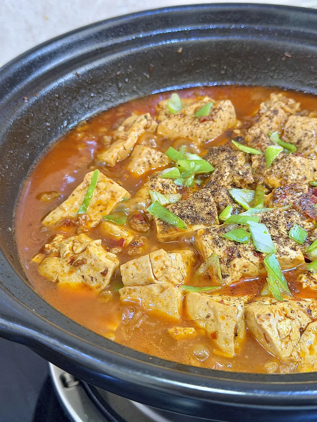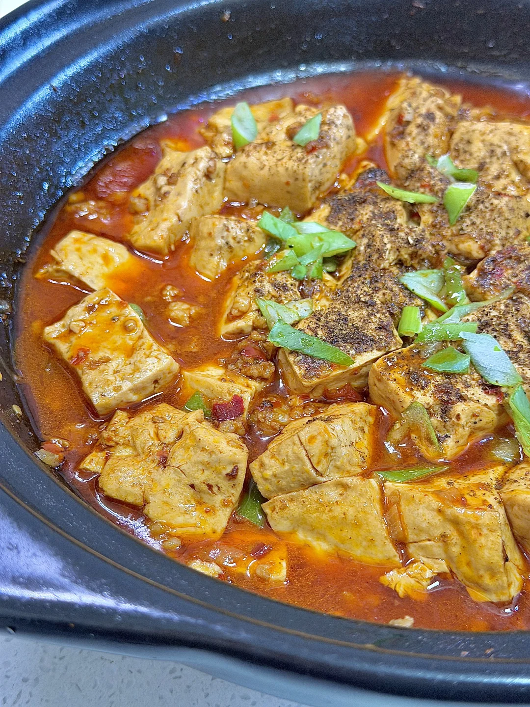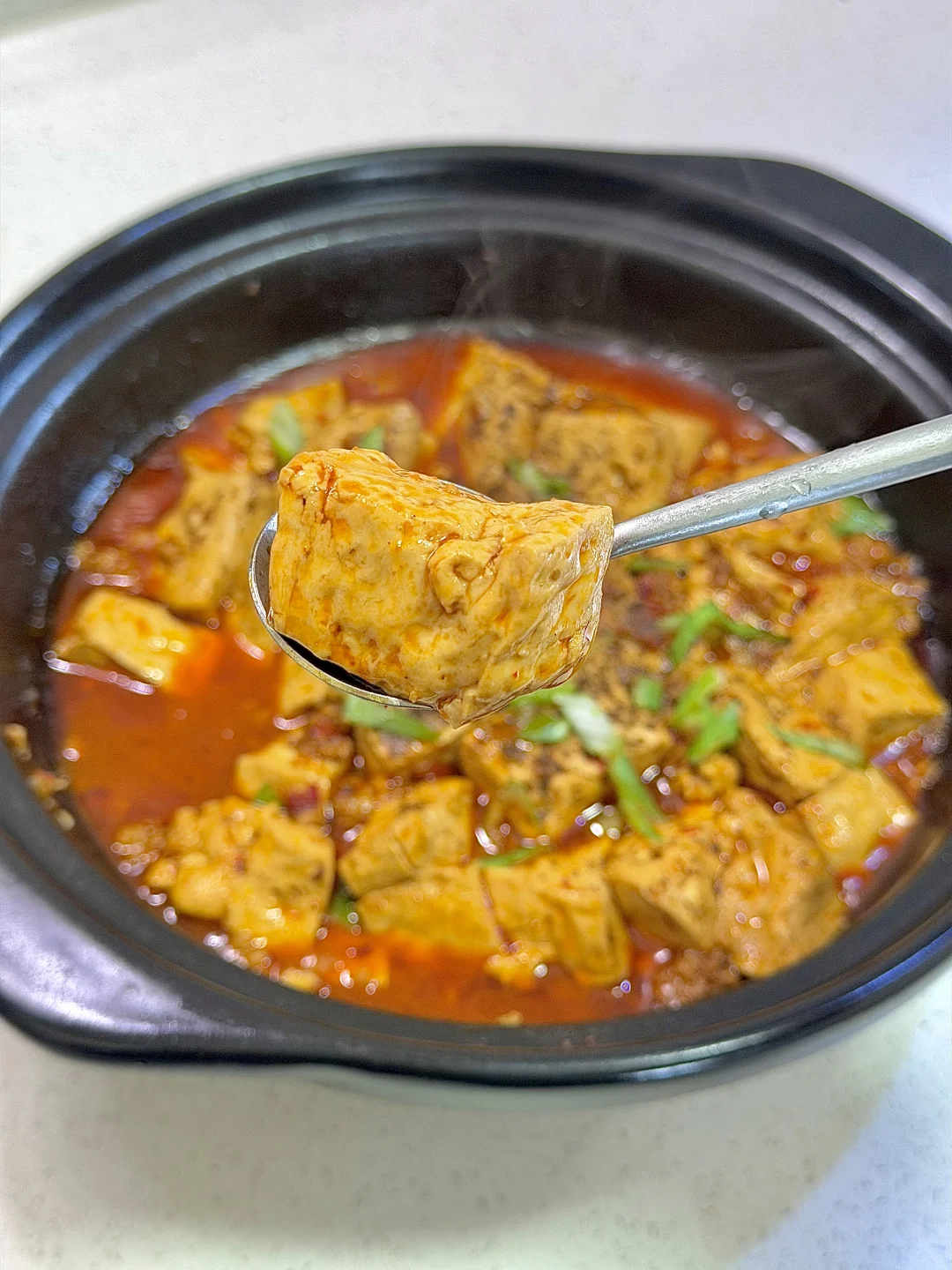 今日份美食分享: 砂锅麻辣豆腐 . 食材:老豆腐 肉末 做法如图上⬆️ . 今天我吃了三碗饭🍚 这个砂锅豆腐你们都去做真的巨好吃😋 喜欢吃花椒味道的,出锅前一定多放点!