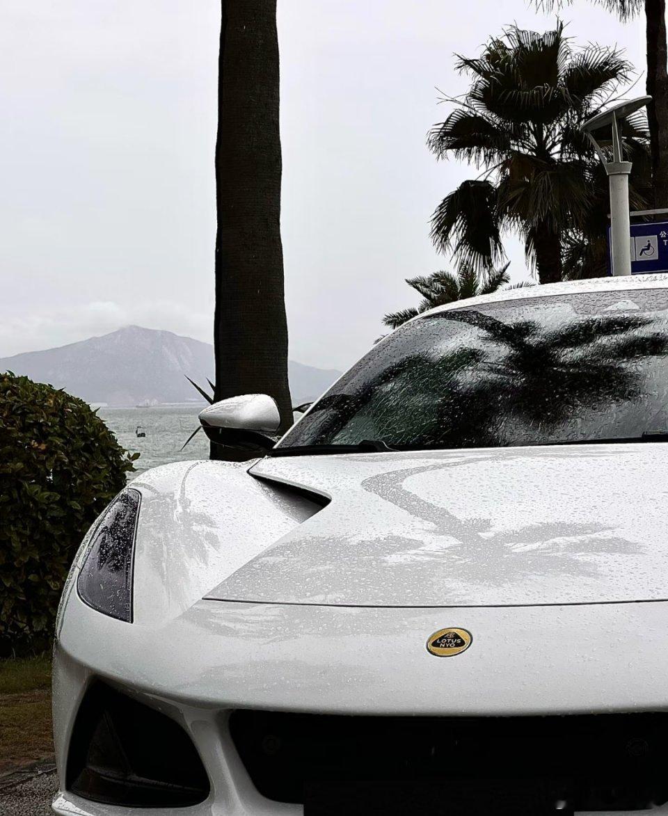 海边棕榈旁撞见这辆白色跑车,流线型车身太戳审美!湿路衬得质感更绝,英伦标+酷黑轮毂,这颜值开出去回头率得爆大v聊车
