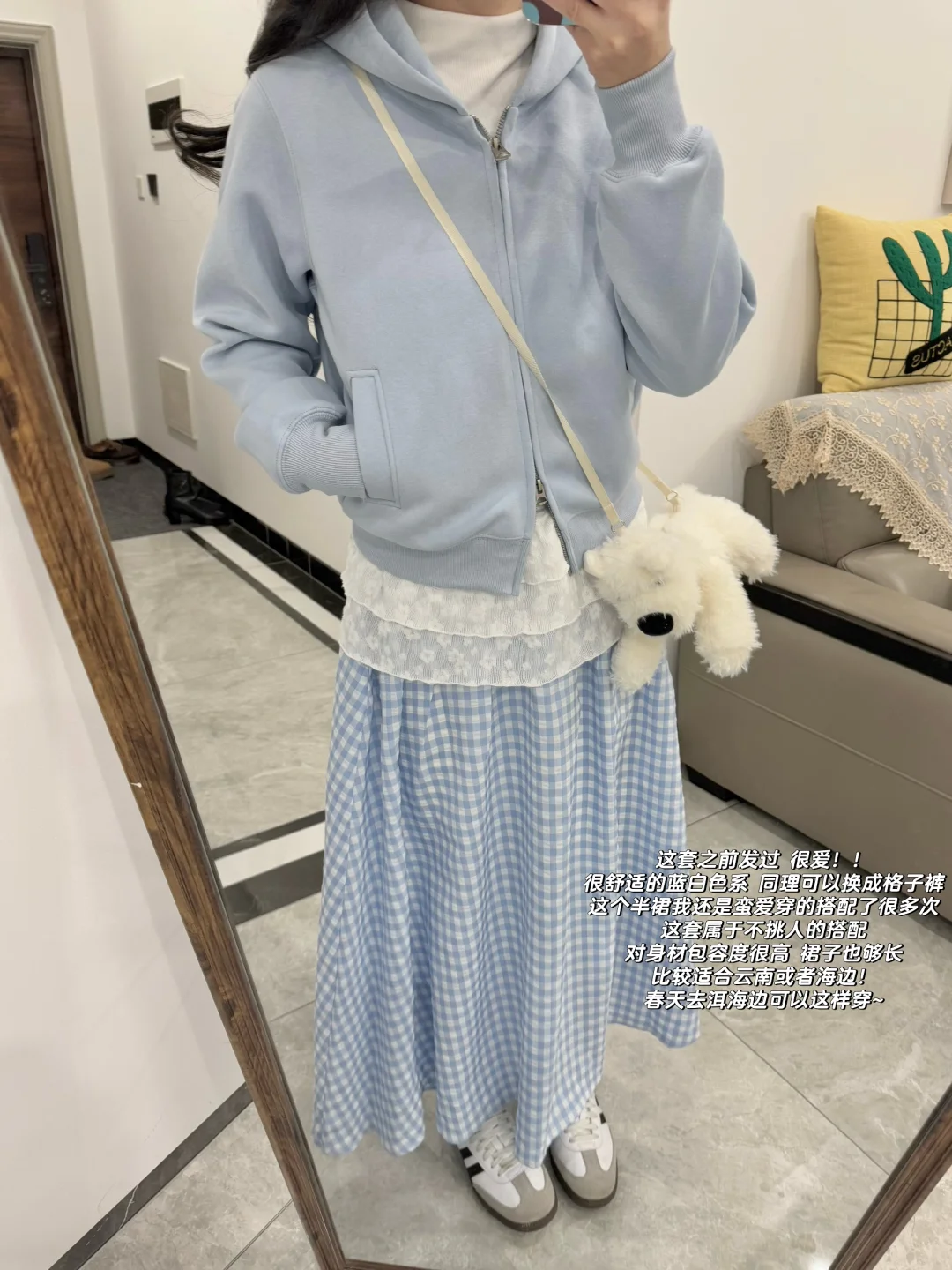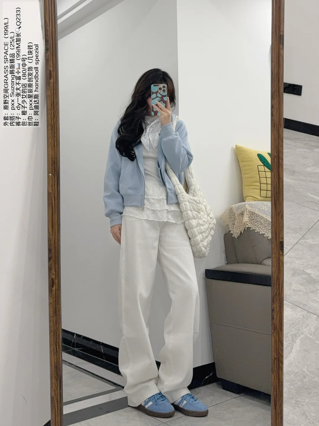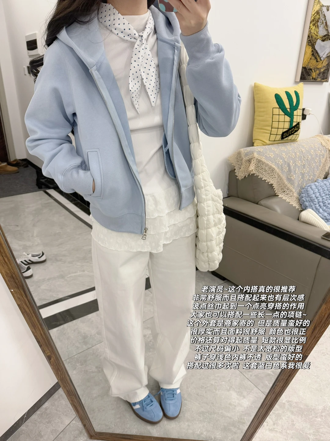 168/107左右 【仅提供穿搭思路 理性种草】 一期奶蓝色系外套的搭配思路~ 奶蓝色搭配白色还是比较干净耐看的 春天穿去约会或者日常通勤都很合适~