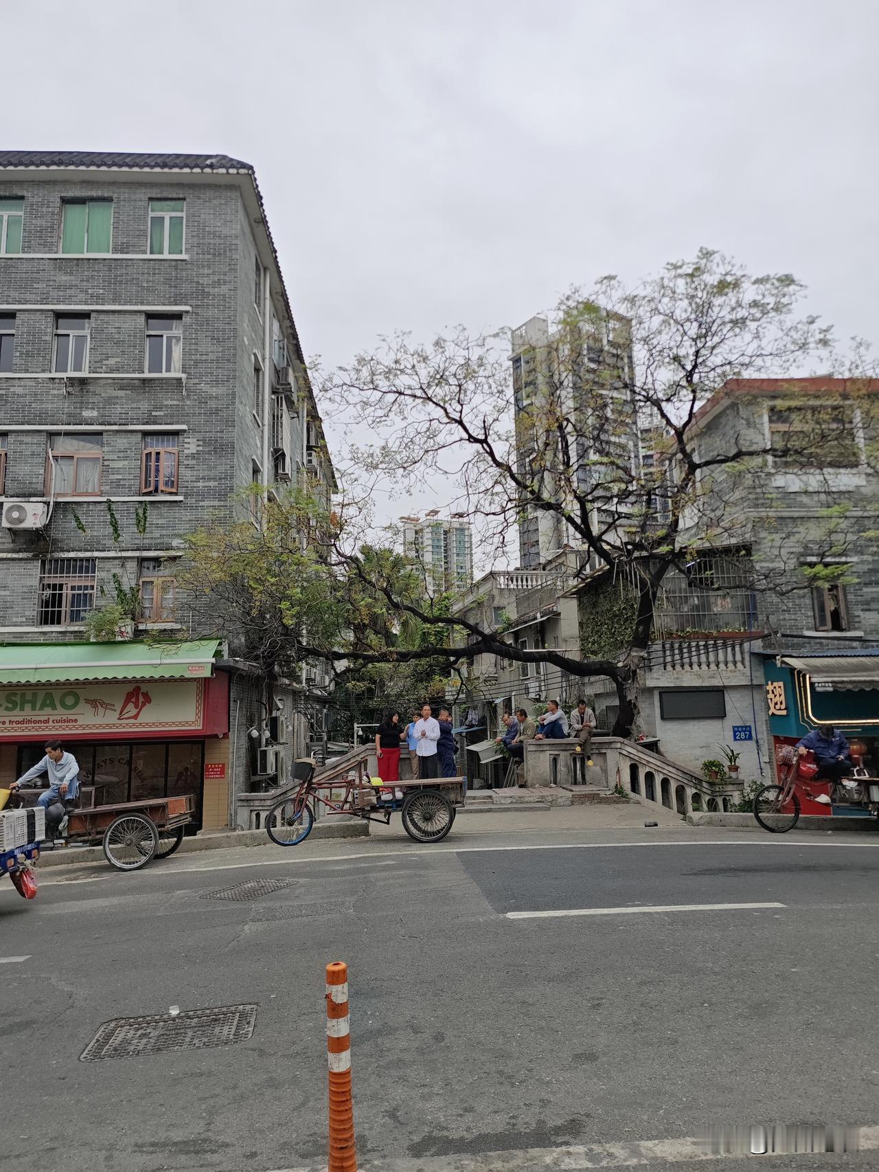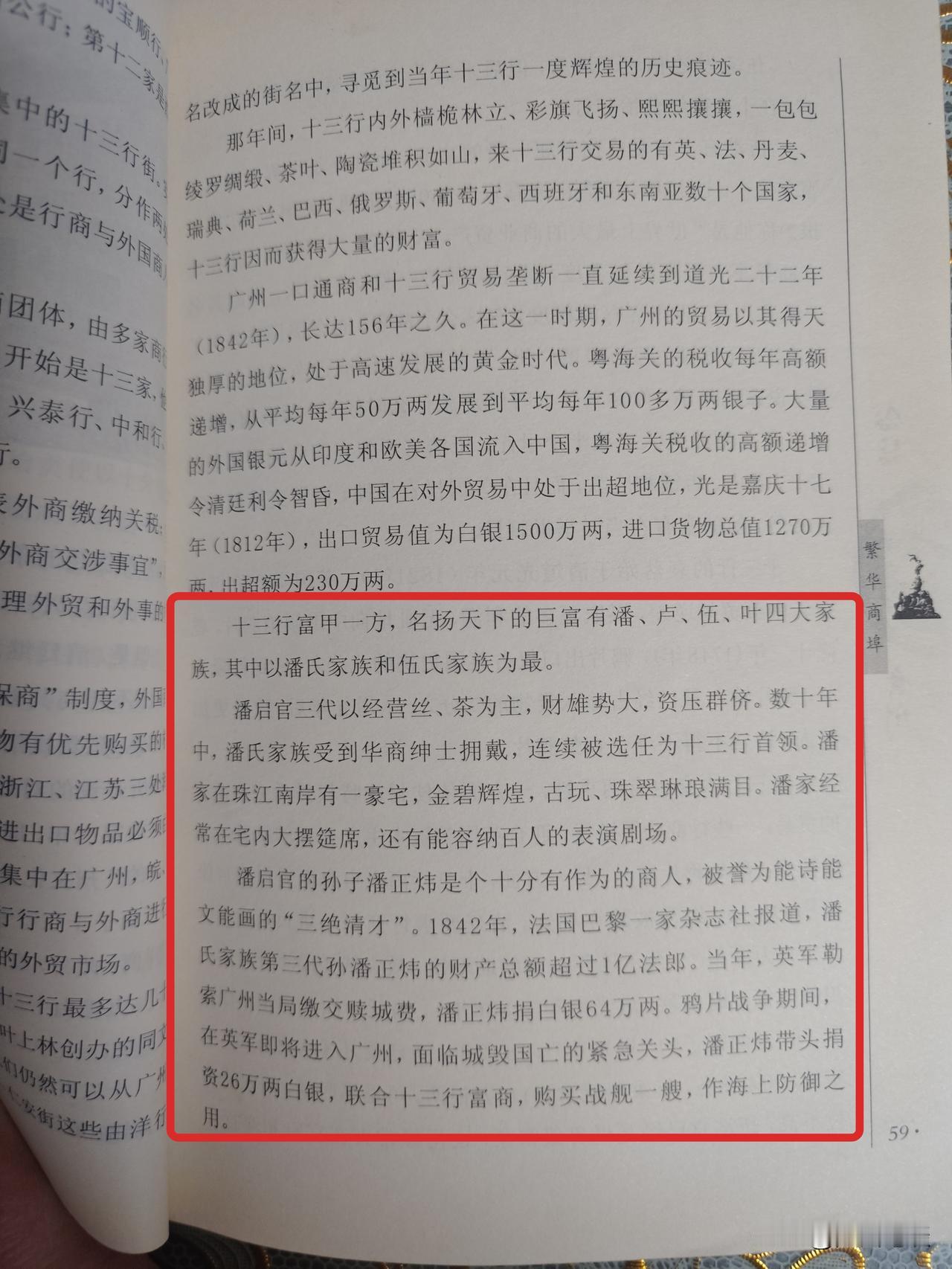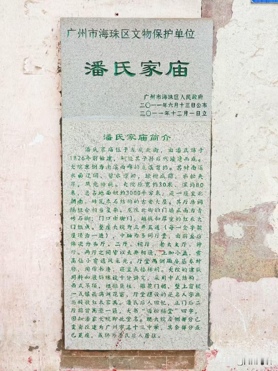 原来广州大名鼎鼎的十三行毁于1856年的第二次鸦片战争,被愤怒的广州民众烧毁了。 我还以为是解放前的呢,原来是鸦片战争时期的事了。 现在的同福西路龙导尾附近,还有十三行巨富潘正炜创建的潘氏家庙,以及伍家祠道等,估计原来的伍家祠就是当时的“世界首富”伍浩官家的宗祠,只是现在看不到了,但路名还在。 现在的潘氏家庙也很破旧了,只剩下一间破旧的大屋了,就在广州第三十三中学旁边,还有放的杂物,隔壁好像还有人居住。 笔者还去看过。 附近还有龙溪首约等,据说是一千多前的南汉亡国的宫院,皇家园林等。 当然了,现在已经没有龙溪这条溪了,早就填平建房了,只有一条马涌在南侧。 同福西路上有一座环珠桥,桥牌上写着跨河桥,但不知河去了哪里,是走失了吗? 但桥下并没有水流过,桥左右是一条巷子里面的干道。 桥上就有很多打零工的,桥头待雇!