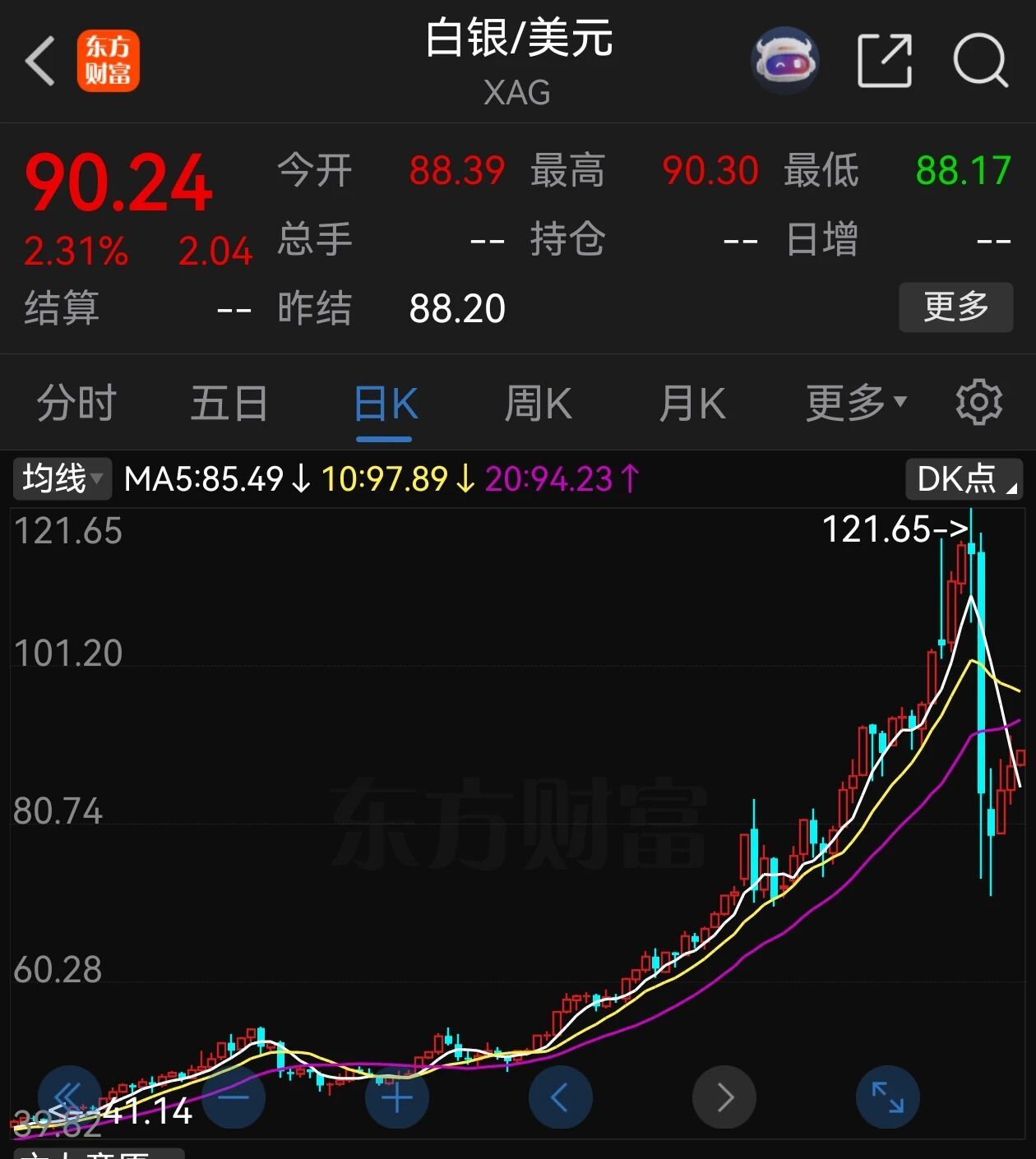 #黄金白银持续反弹#【#金价银价继续反弹#】现货黄金日内涨幅扩大至1.14%,报5021.01美元/盎司。现货白银向上触及90美元/盎司,日内涨2.31%。