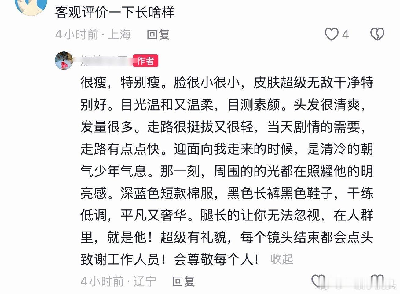 小城良方群演说请客带群演份额的只有肖战。群演repo肖战素颜出演,皮肤状态超级好,真人挺拔且少年感十足,身上有干净的香水味,“人品演技技能专业样样都顶”人非常有礼貌,拍完一条都会给工作人员致谢,肖战不愧是顶流,教养超级好!办事也好周到