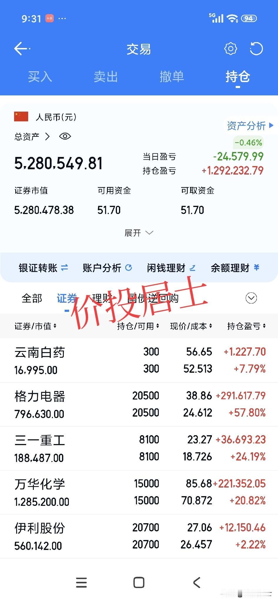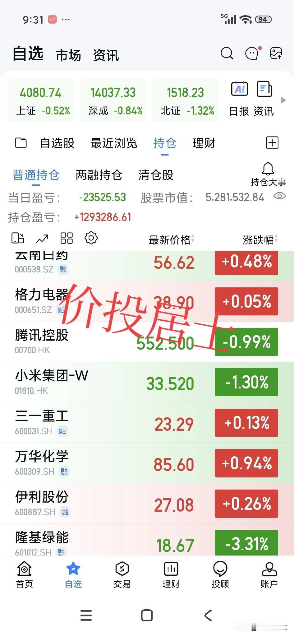 实盘账号这次的回撤已经在50万左右了,其实我对这样的波动是没什么感觉的。可能新关注我的朋友不知道,我这个实盘账号之前有过最大一次约150万左右的波动。还是那句话,不属于自己能力范围内的钱,我为什么要去在意呢? 反而有一些朋友对回撤50万大惊小怪的[笑哭]也不乏调侃我的一些持仓个股回撤的。其实连我这个当事人都不在意的东西,我都不明白为什么有人会比我还在意。大多数人嘴上说着不相信有人能预测股市,然而自己却做着好像自己能预测股市的行为,这个这的很矛盾! 价值投资难吗?其实原理很简单!价值投资容易吗?难就难在复杂的人性。就拿我来说,就是实实在在的每天分享下自己的实盘与心得体会,没想什么多余的东西。然而有人却认为我怎么样,怎么样[笑哭] 我能怎么样?我就是一个免费的博主,普通的小散户,我就做好我自己,别人爱怎么样就怎么样,仅此而已[笑哭][祈祷]