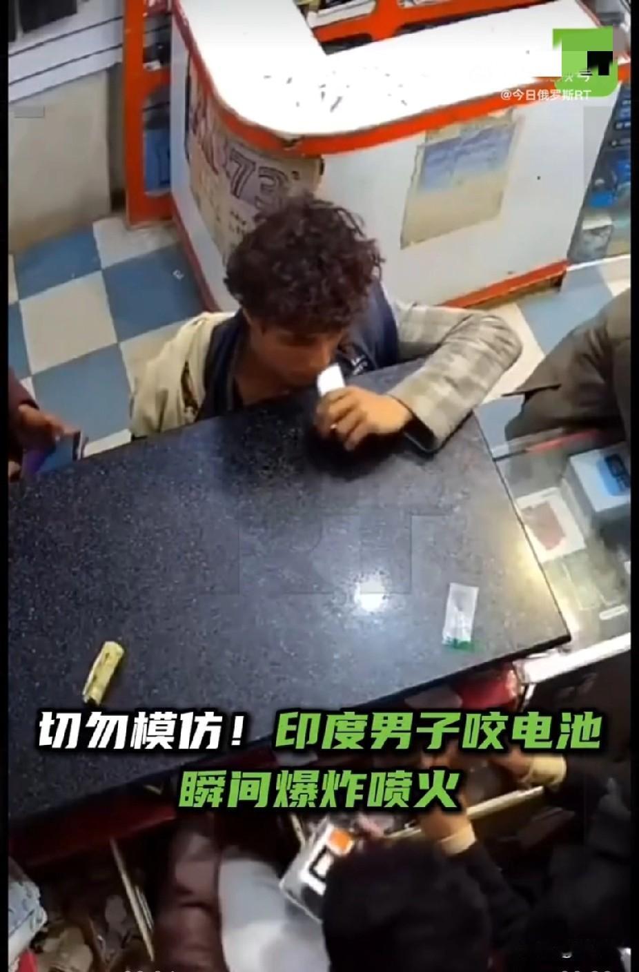 还得是印度人!印度小哥咬电池瞬间爆炸,秒变黑人小哥! 一印度小哥在修手机时等待无聊,于是就把玩手机电池! 小哥可能是饿了,误把电池当成巧克力了,一口咬下去! 说时迟那时快,只见电池变成一团火花,小哥瞬间变成黑人小哥了! 这场景看的所有人揪心不已,电池可不是巧克力,不能乱咬!