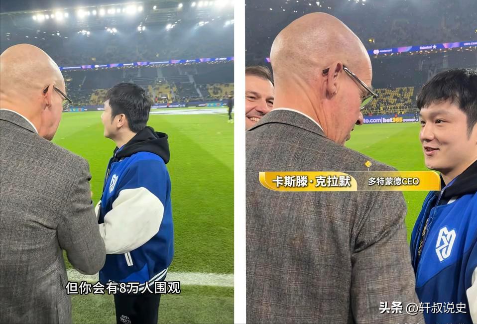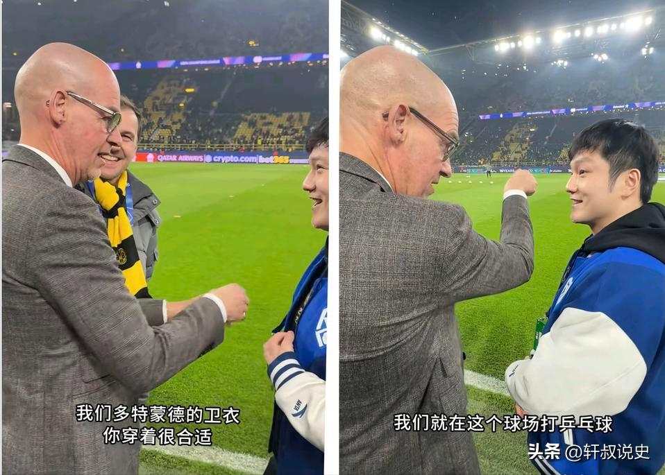 1月29日,多特蒙德CEO就差当场扣下樊振东了!他一见到樊振东就急切希望他的加入。他说我们多特蒙德的卫衣你穿很合适[送心] 1月29日,多特蒙德主场威斯特法伦球场迎来一场欧冠比赛,但当晚的焦点之一却是一位特殊的客人,中国乒乓球世界冠军樊振东。他身旁坐着德国乒坛传奇蒂莫·波尔,两人的友谊早已是体坛佳话。 2023年,波尔就曾邀请樊振东现场观看多特蒙德的比赛,樊振东当时便许下“希望再约看球”的心愿。 今年1月,当樊振东随萨尔布吕肯俱乐部来到多特蒙德比赛时,波尔送上了一份特别的见面礼,一件绣着“一马当先”生肖图腾的多特蒙德中国马年主题卫衣。 尽管樊振东是众所周知的皇马球迷,但他当晚在外套下穿上了波尔赠送的这件多特卫衣,以表达对好友和主队的尊重。不过,他的一件蓝色萨尔布吕肯队服外套,却无意中触碰了多特蒙德一条延续61年的铁规。 自1965年起,多特蒙德更衣室严禁任何蓝色物品进入,因为那是同城死敌沙尔克04的代表色。当俱乐部CEO卡斯滕·克拉默注意到樊振东的蓝色外套时,他幽默地调侃道,“你这个颜色最好别在多特蒙德出现。” 然而,规矩这次被打破了。赛后,樊振东不仅被允许进入更衣室,还身穿那件蓝色运动服接受了采访。多特蒙德官方对此的回应充满人情味,“原则上蓝色不能进,但可稍微没有原则一次。” 在球场中央,克拉默CEO向樊振东赠送了一件印有拼音“FAN”的专属1号球衣。在足球世界,1号通常是守门员的专属号码,将其赠予一位乒乓球运动员,在多特蒙德历史上尚无先例。 克拉默CEO还当场提出了一个充满想象力的邀请,“如果你加入多特蒙德,和波尔当队友,下赛季你们的揭幕战可以在这座球场中间打。观众们看起来可能有点吃力,但你会有8万人围观。”樊振东笑着回应,“也许观众们会嘘我!” 这场跨界互动并未因主队0—2失利而失色。 多特蒙德中文官方社交媒体账号从凌晨三点半开始,持续发布樊振东的相关动态。樊振东在赛后真诚表示,“虽然比赛结果可能不是如球迷想象的,但我相信也是一场非常精彩的比赛。我相信我会再次回到这,见证他们的胜利。” 这次破例与高规格接待的背后,是樊振东在德国实实在在的影响力。他加盟德甲萨尔布吕肯俱乐部后,不仅帮助球队取得佳绩,更直接带动了当地球市。原本25欧元的站票被炒至180欧元,俱乐部不得不将主场移至能容纳3500人的更大场馆。 对于多特蒙德而言,这次跨界联动也是一次成功的尝试。此前有德国媒体报道,随着罗伊斯、桑乔等球星的离开,多特蒙德在社交媒体上损失了大量粉丝,急需寻找新的关注点。樊振东的到访,恰好为俱乐部带来了破圈的影响力。 在参观俱乐部奖杯陈列室时,面对多座德甲冠军奖杯和1997年的欧冠奖杯,樊振东的率真再次展现。当被问及最喜欢哪一座时,他眼睛一亮,笑着回答,“每一个都喜欢,成年人全都要!”这番话迅速在球迷中传播开来。 从打破颜色禁忌到赠送专属球衣,再到构想一场八万人围观的乒乓球赛,多特蒙德用一系列破格之举,完成了一次精彩的体育跨界叙事。这不仅仅是两位运动员友谊的见证,更展现了当代体育打破项目壁垒、融合多元文化的无限可能。 体育的边界有时很清晰,就像足球场上的白线与乒乓球台上的网。但体育的精神内核总能超越这些界限,将不同项目、不同国籍的人们联结在一起。当樊振东在多特蒙德的黄色人海中举起那件“FAN 1”球衣时,我们看到的不仅是一位冠军的荣誉时刻,更是体育本身最纯粹的魅力。 你是否也曾被某个打破常规的体育跨界瞬间所打动?无论是足球与乒乓的这次相遇,还是其他项目之间意想不到的联动,欢迎在评论区分享你最难忘的体育跨界故事。 信息来源:新浪网