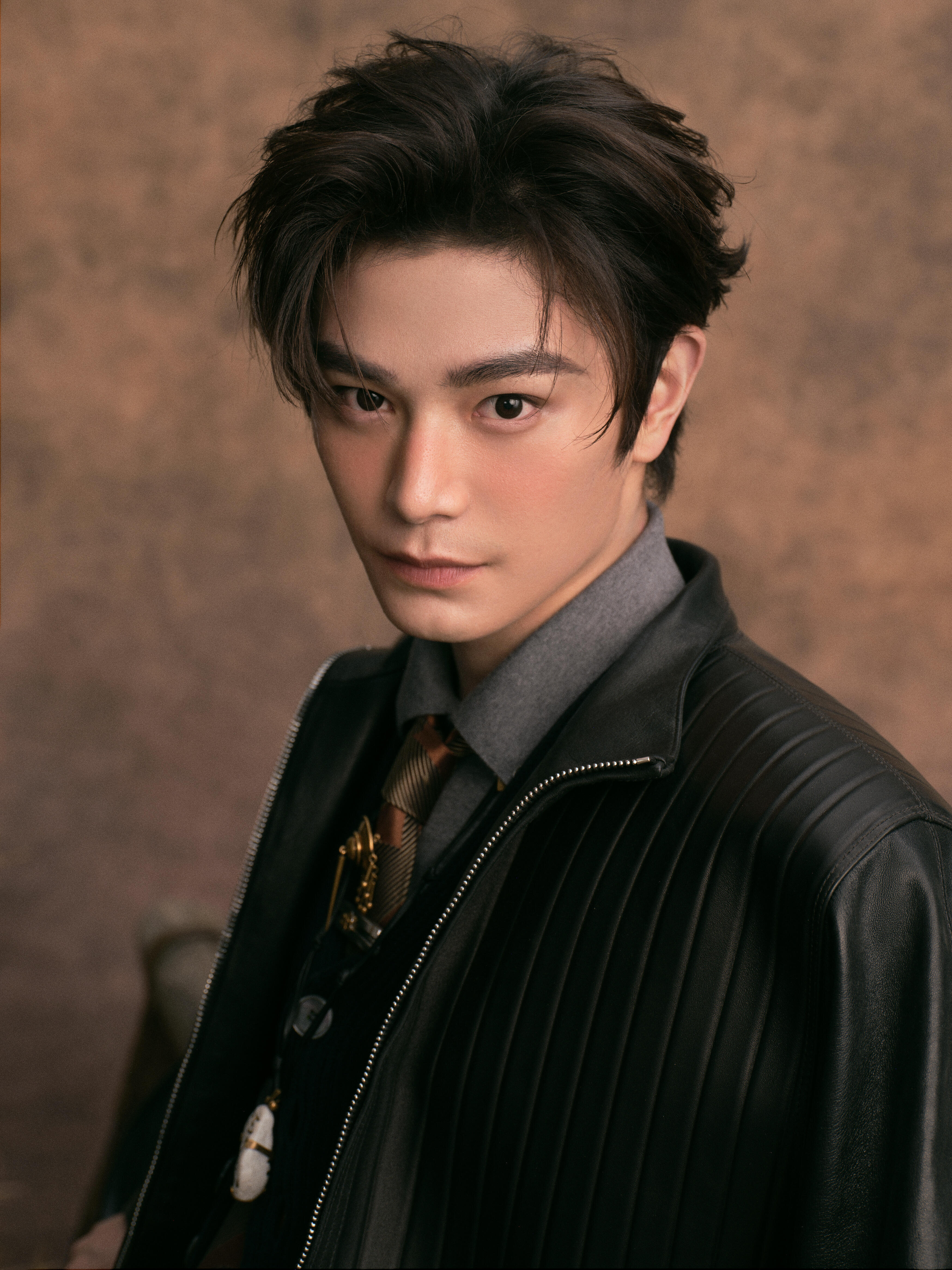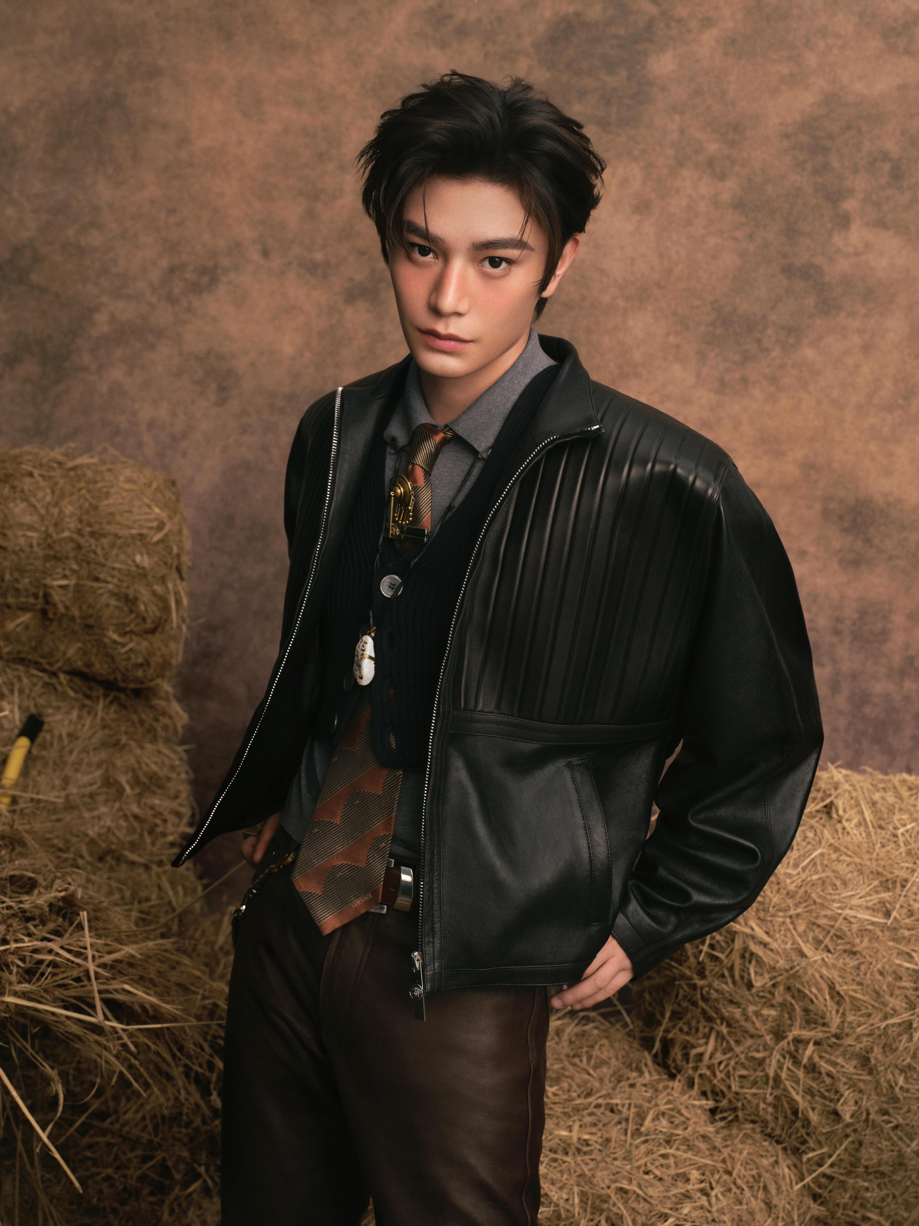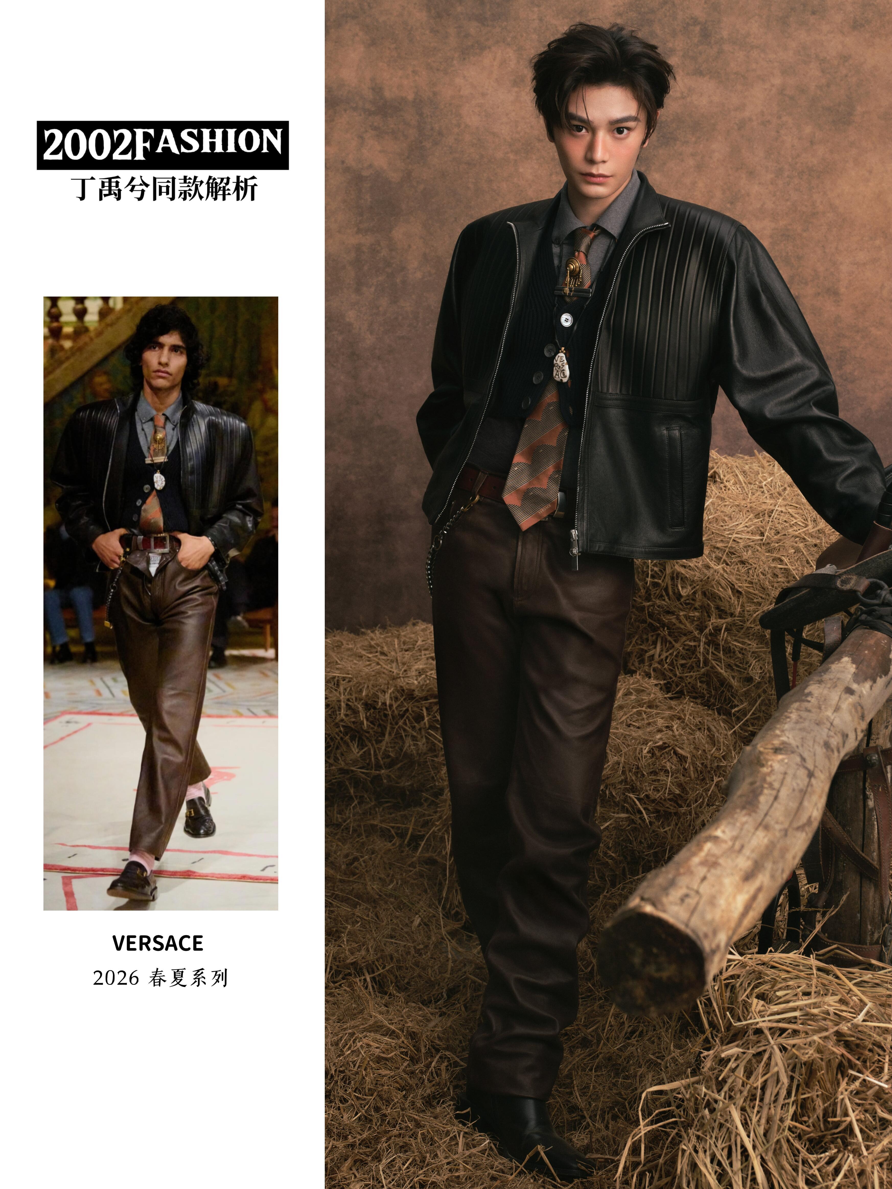 微博之夜出图丁禹兮身穿Versace26春夏出席微博之夜,皮衣领带,把野性又矜贵
