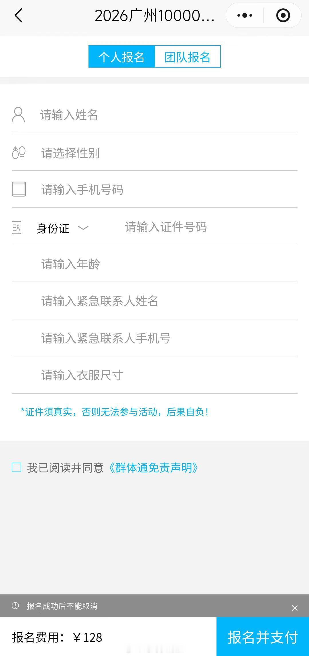 2026广州10000米竞速跑报名开启。广州现在的办赛水平也只能一声叹息了吧,从报名系统就看得出来。填了身份证号还要自己填年龄,服装尺码不设下拉菜单自己随便填……还有,竞赛规程只设PDF版让用户自己下载,上面打满巨大水印,太奇葩了。