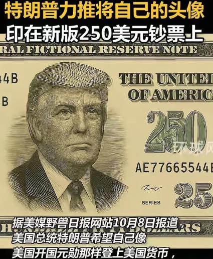 特朗普这次真的要成为美国首位“250总统”了,不过这个数字也真配得上他。 这不今年是美国建国250周年,美国央行要推出面额为250的纪念币,像这种出风头的事情必须要出马。 特朗普现在已经表示纸币面额上要出现他的头像,也就是二百五旁边就有一个特朗普,这也算是把名号具象化了。 不过这可能只是他的一厢情愿,因为美国还没有把在世总统的头像放在纸币上的先例,而且美国央行不受总统的控制,特朗普能上镜概率很小。 不过这也并非没有可能,因为特朗普所在的共和党长期把控国会,如果国会通过了投票,那么他的愿望真有可能实现。 其实说实话把面额250的钞票印上自己的头像真不是一个好主意,可能美国没有这方面的忌讳吧。