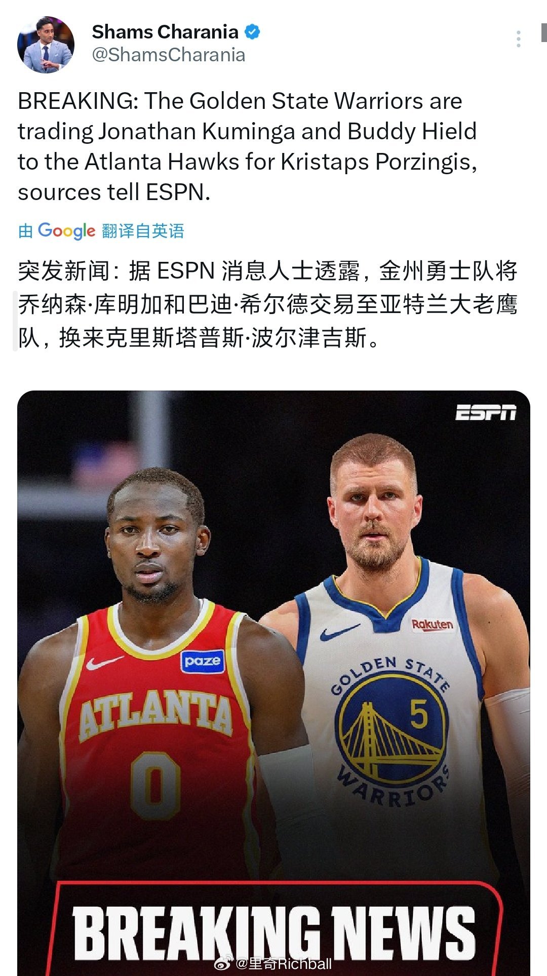 勇士深夜完成交易,送走库明加和希尔德,可是为啥是换来铂金