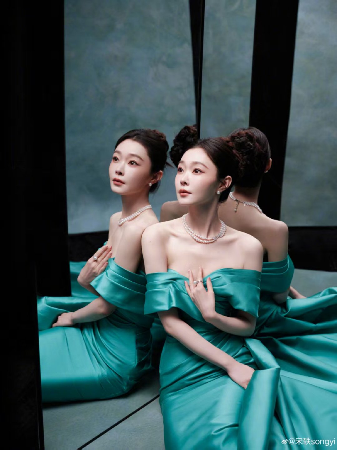 宋轶镜像美学宋轶这组微博之夜大片太会拍了!青绿色缎面长裙衬得她肤白胜雪,珍珠项链添了几分温婉。镜像交错间,她在镜影与真实里切换出无数种姿态,慵懒、优雅、清冷,每一面都美得恰到好处,独轶无二的氛围感直接拉满。微博之夜红毯