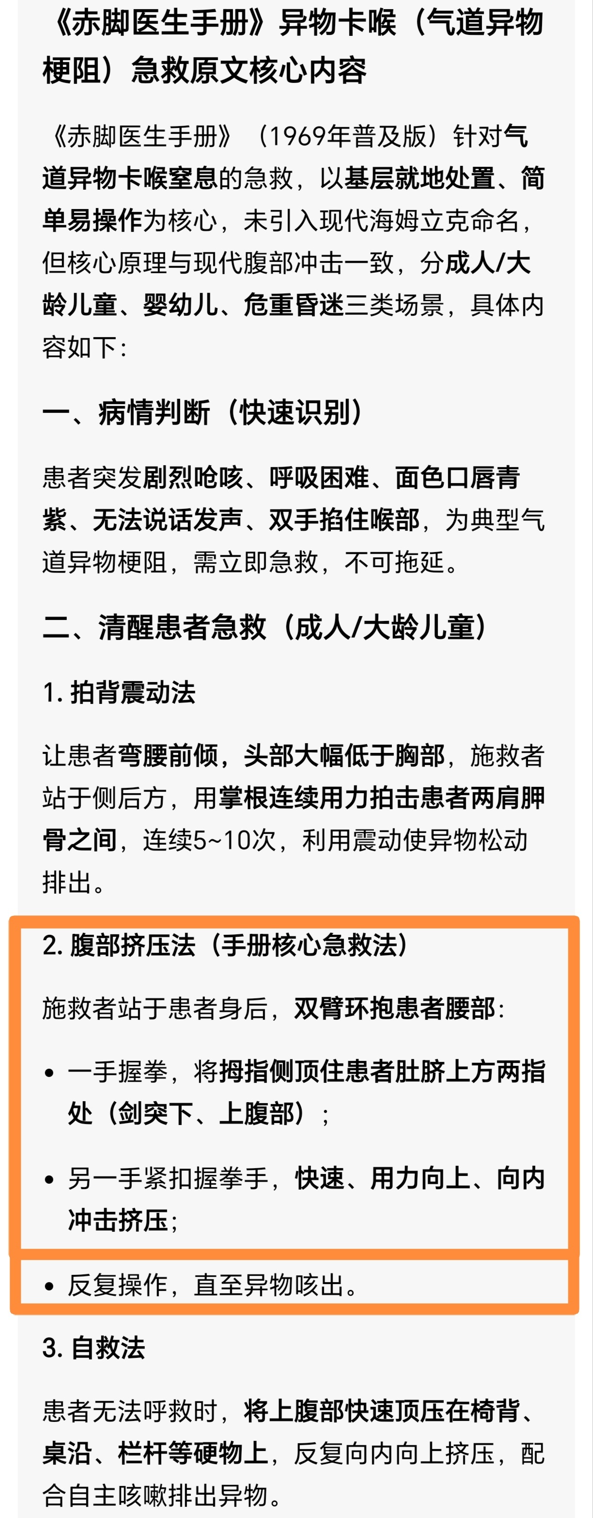 早在宋明就告诉你:“以手按心腹,令气上冲,其物即出”。(这只是找到的最早记载,实际应用时间肯定比这早多了),你只要明白了“令气上冲”的原理,无论正按还是环抱,都是自然而然就会出现的方法,还需要等着某个人发明吗?自媒体时代信息交流方便了,他们塑造的金身要破产咯。