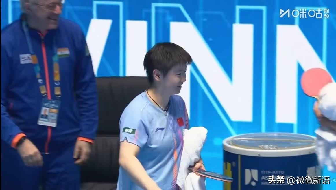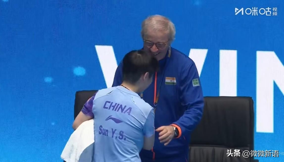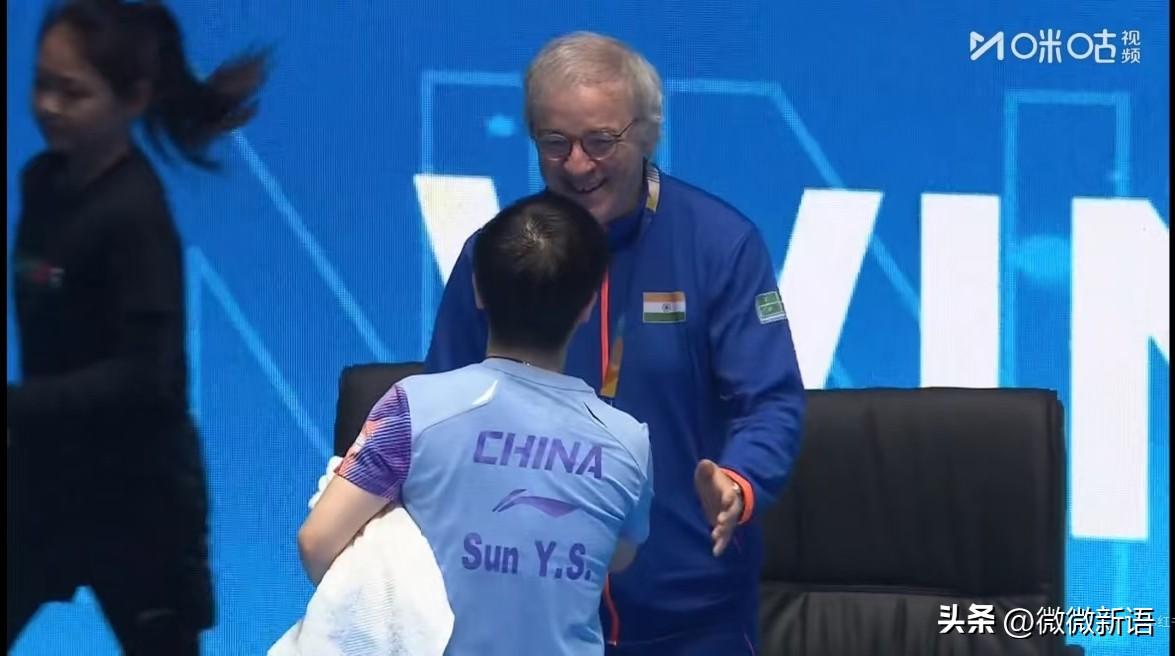 印度队教练看到莎莎笑的很慈祥,一看到他就想到“只有莎,没有孙”。这个教练对莎莎也是满眼的喜欢。他也很喜欢王楚钦,昨天王楚钦对的也是印度的选手也是这个教练,一脸喜欢的笑着拉住握手。 莎莎是3-0赢了巴特拉,当莎莎走向印度教练时,教练已经开始笑了,莎莎过去应该和教练说话了,这个教练也拍拍莎莎的肩膀,应该是这个教练夸莎莎了吧,莎莎离开时笑的特别开心,这样的比赛氛围真好! 印度这个教练也很辛苦啊,又管男队又管女队,如果有混双的比赛,还要管混双。但是他看起来真的很慈祥,特别是看到莎莎和楚钦时,什么时候都是笑的特别开心。今天莎莎的场外是马琳,莎莎得分的时候也能听到马导在喊,莎莎今天打的很好,以前的那个莎莎回来了,现在莎莎也以小组第一出线了。