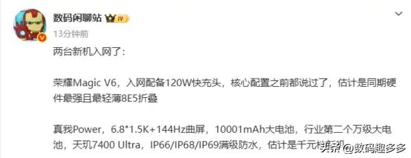 真我Power配置曝光,搭载10001毫安电池为亮点 据爆料信息,真我Power配备一块6.8英寸1.5K分辨率144Hz高刷曲屏。性能续航方面,新机搭载天玑7400 Ultra处理器与一块10001mAh超大容量电池。此外,该机还支持IP66/IP68/IP69级别的满级防护。真我手机 数码趣多多辣评