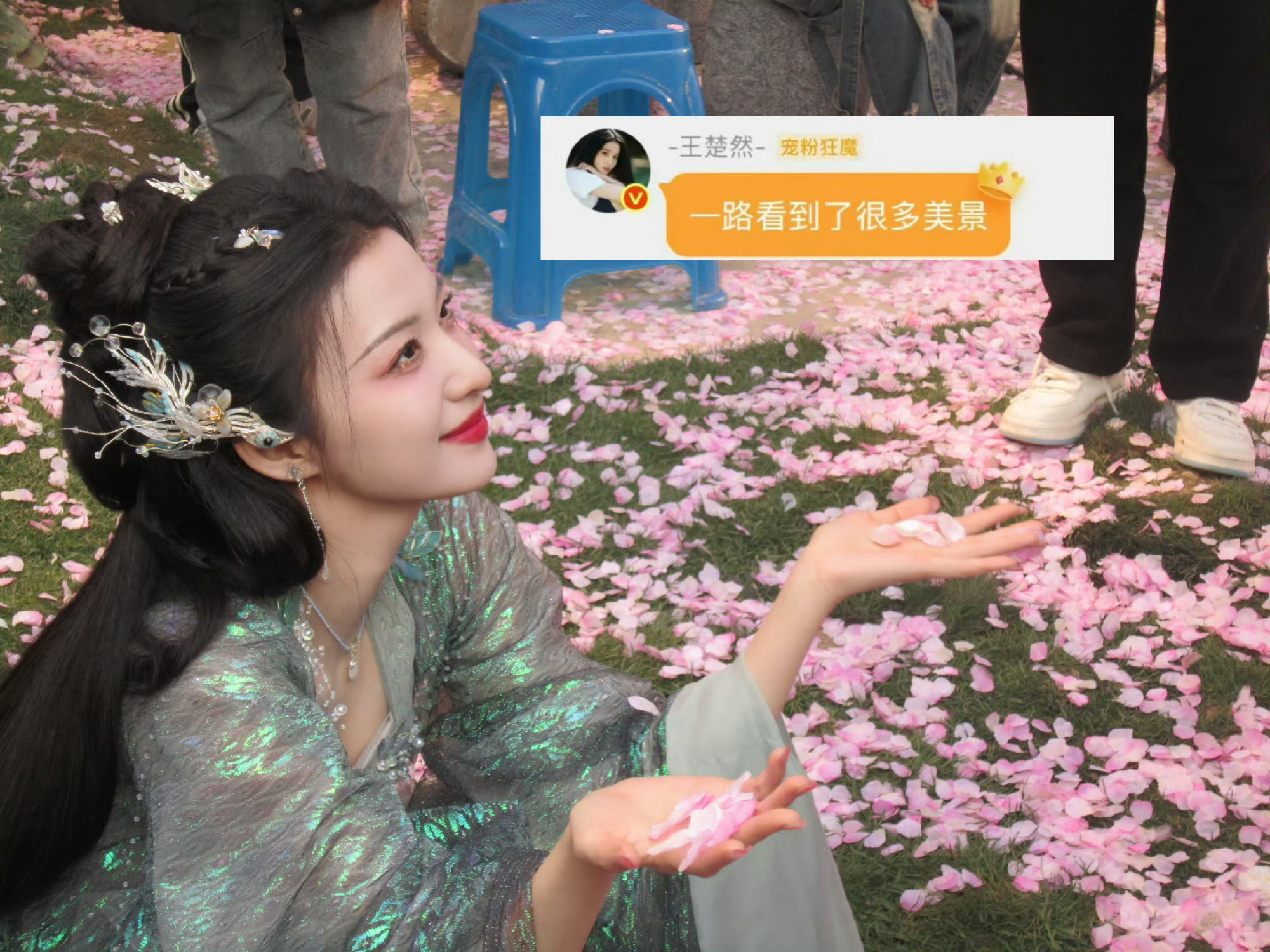 张天爱跟素人合影,胯真的好宽,大宅院似的