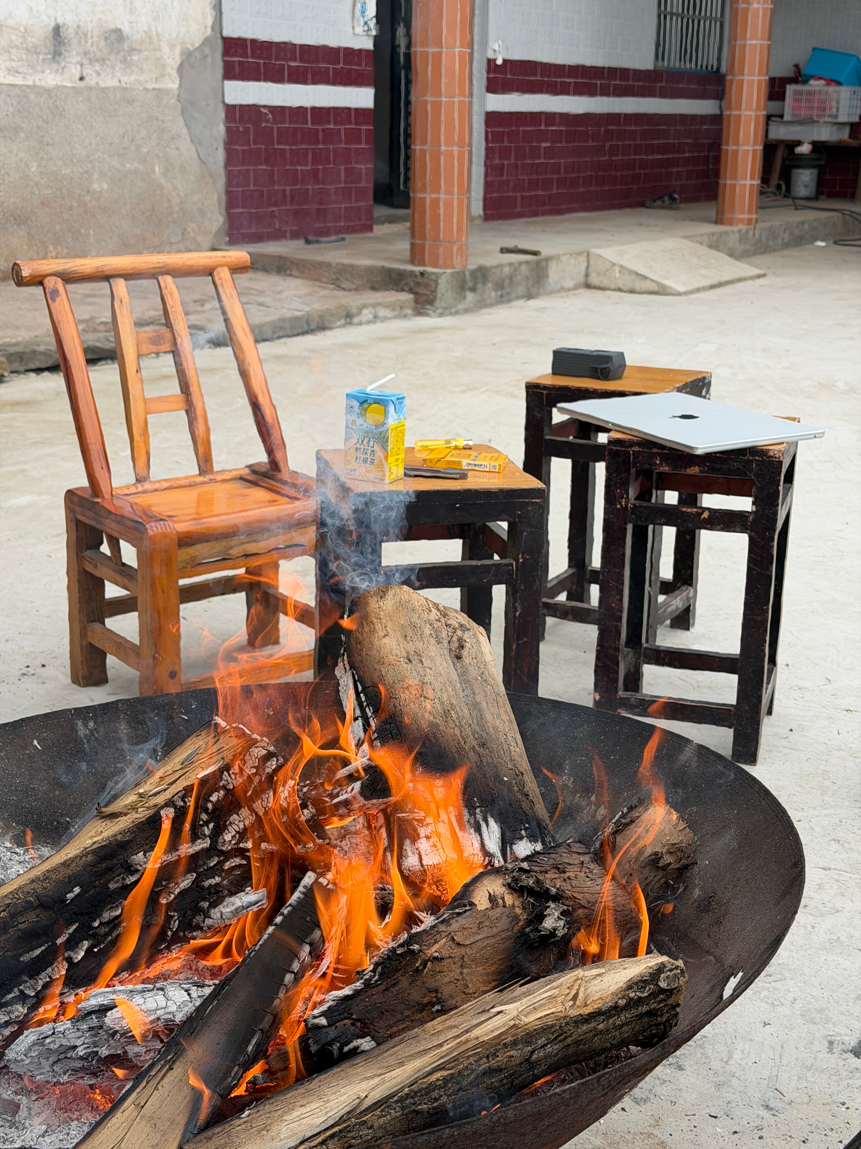 在农村没啥事儿干、就坐坝子里烤火发呆