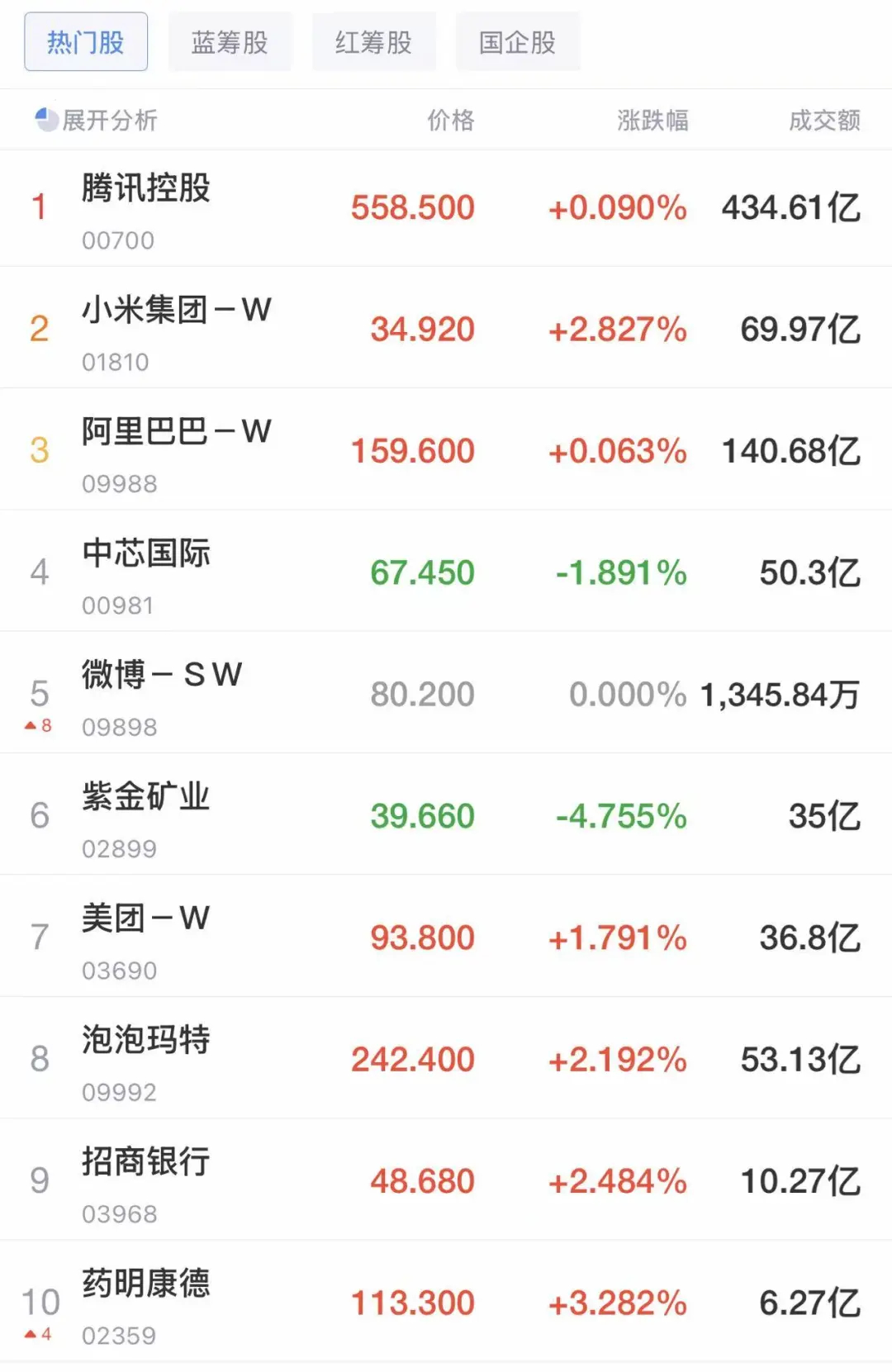 【#港股三大指数全线飘红#】2月5日,#港股三大指数低开后震荡走高#。截至收盘,恒生指数涨0.141%,国企指数涨0.497%,恒生科技指数涨0.74%。南向资金净买入超249亿港元。新能源车企、航空、电信、生物医药、内银、物流等概念走强;有色金属、商业航天、光通讯、芯片、光伏太阳能等概念走弱。科网股午后回暖,联想涨超3%,小米、百度涨超2%,美团涨超1%;黄金股普跌,赤峰黄金跌超5%。网页链接