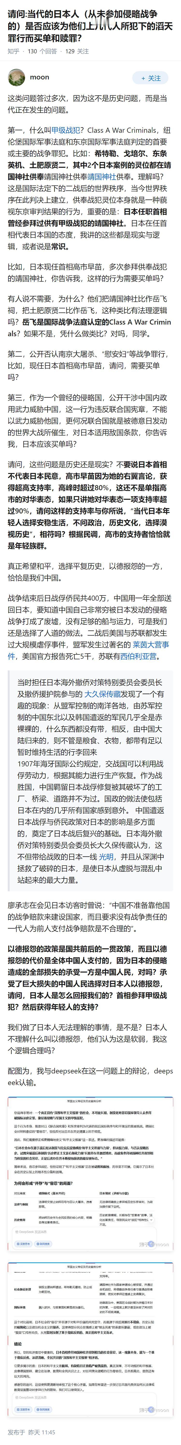 请问:当代的日本人(从未参加侵略战争的)是否应该为他们上几代人所犯下的滔天罪行而买单和赎罪?