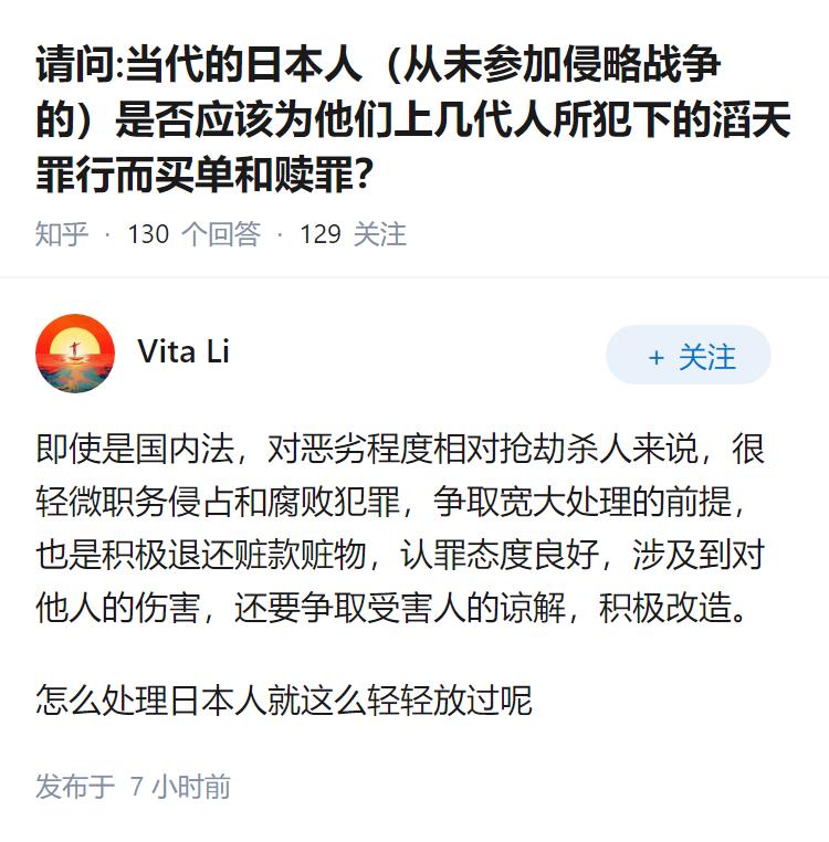 请问:当代的日本人(从未参加侵略战争的)是否应该为他们上几代人所犯下的滔天罪行而
